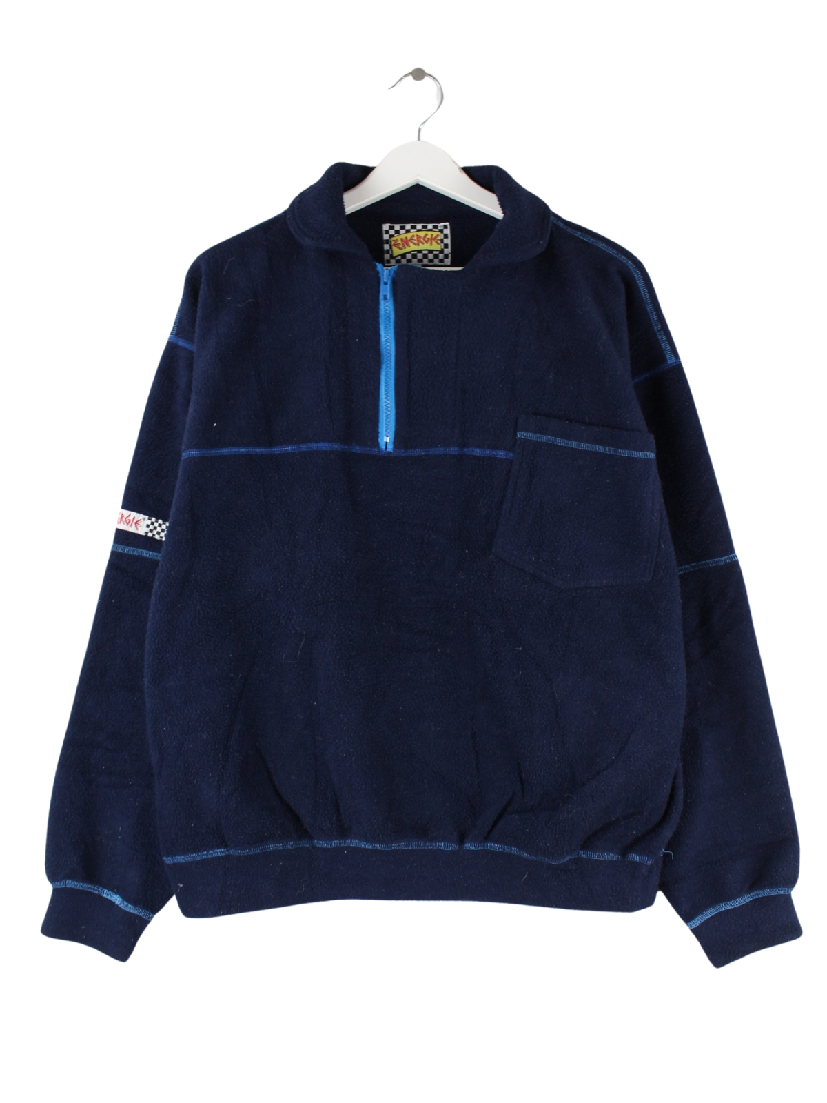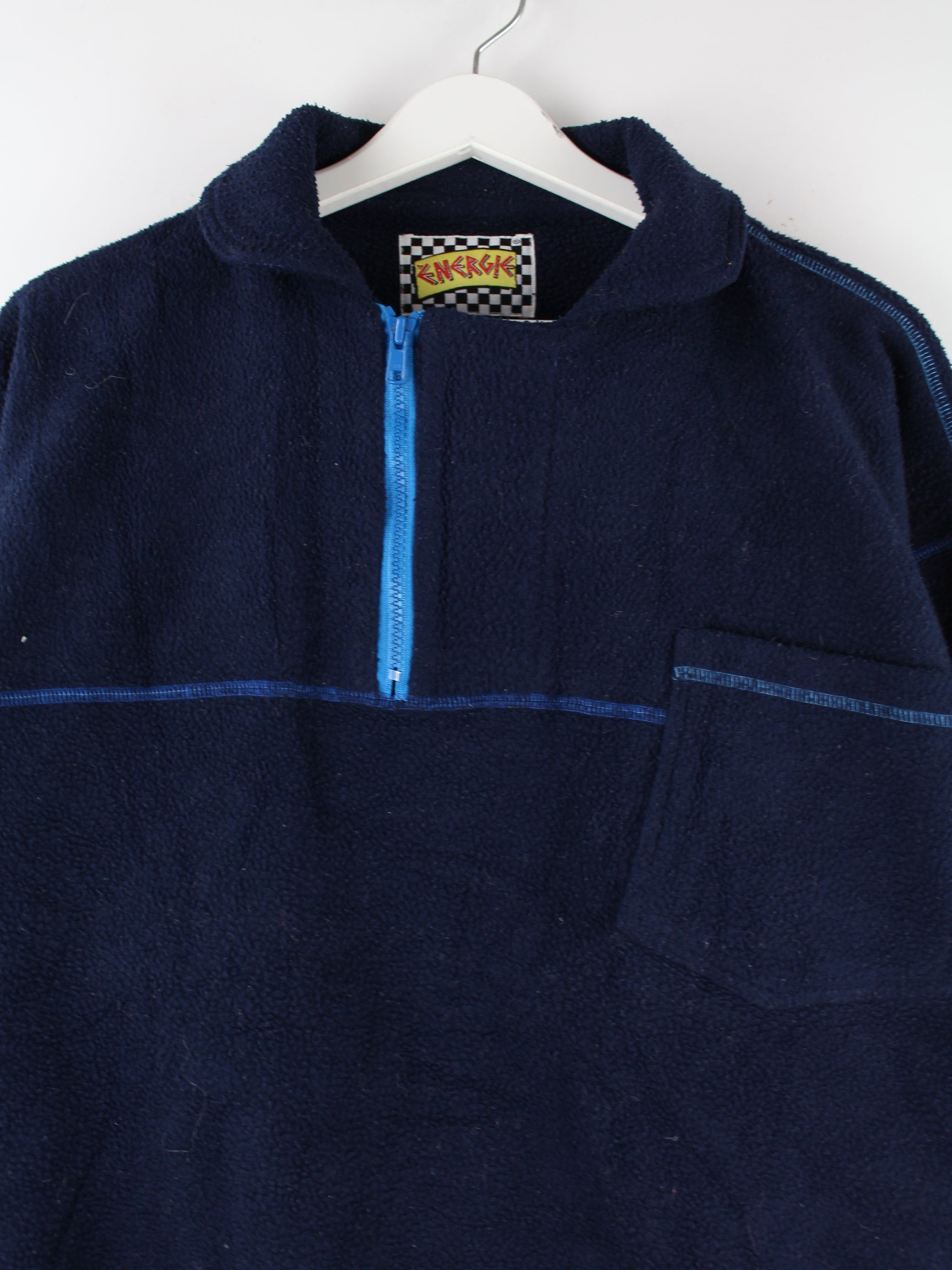Vintage 80s Fleece Half Zip Sweater Blau M