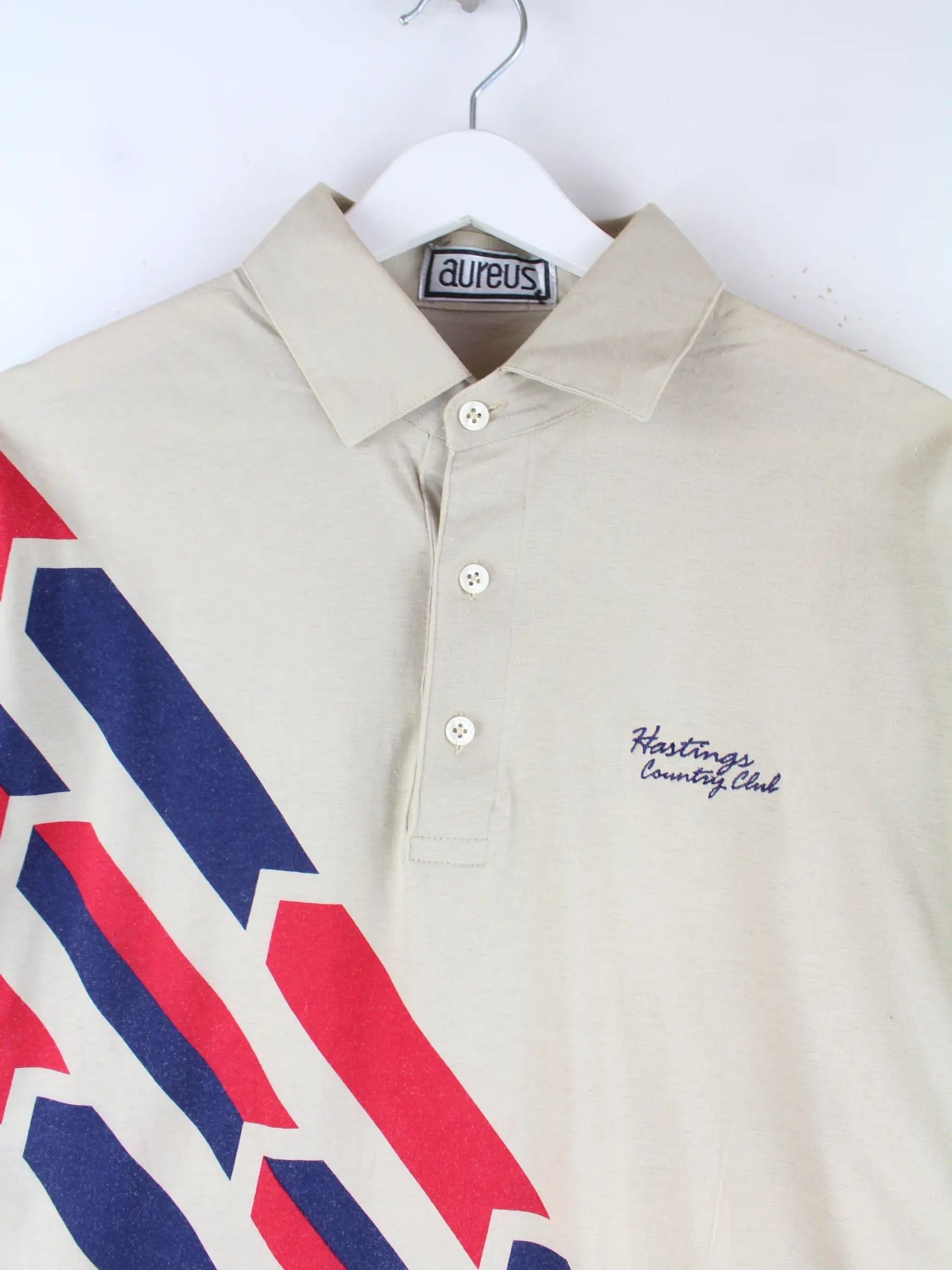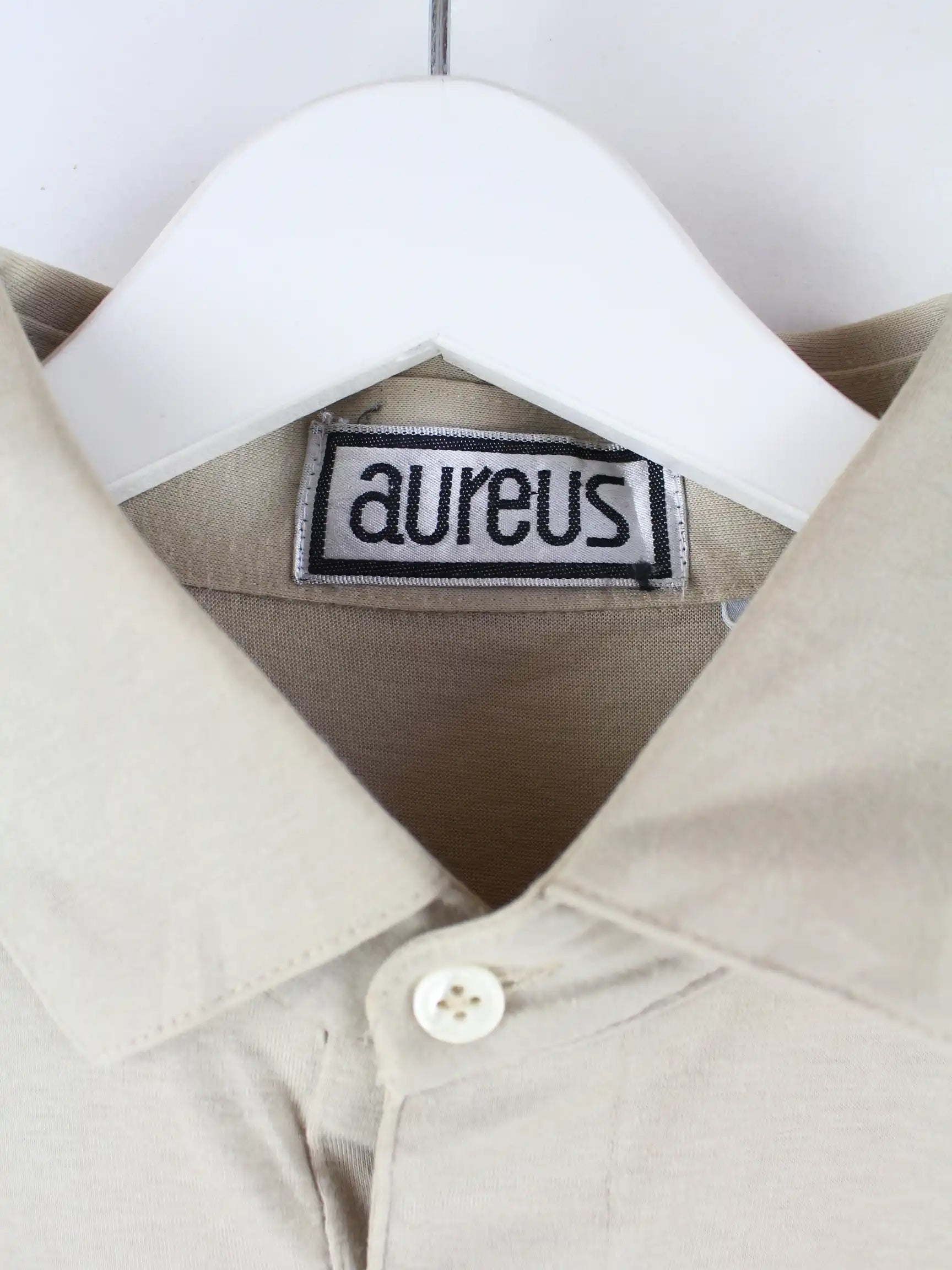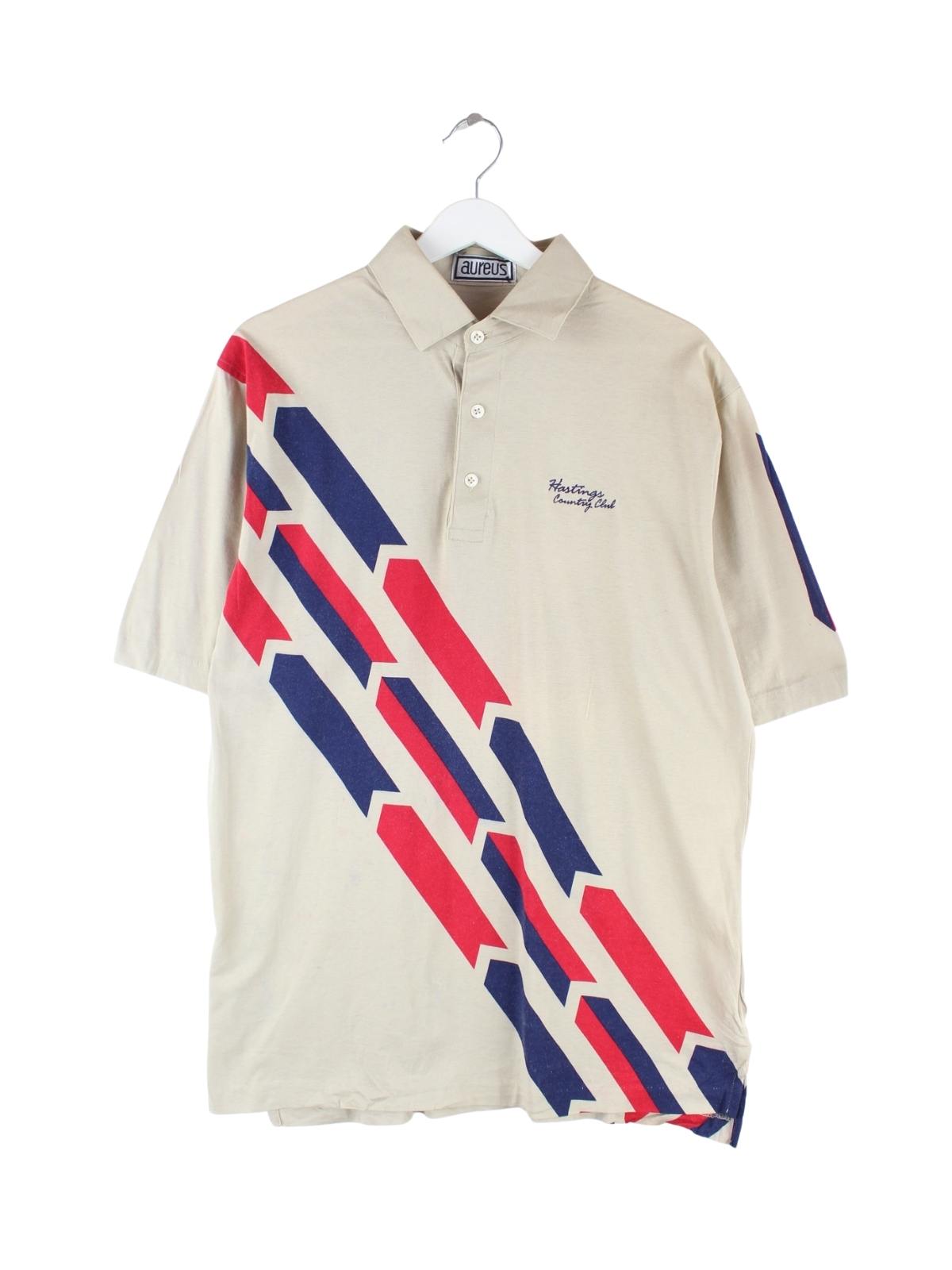 Vintage Poloshirt in Größe L aus den 80'ern. Es ist aus Baumwolle gefertigt und in Beige auf Lager.