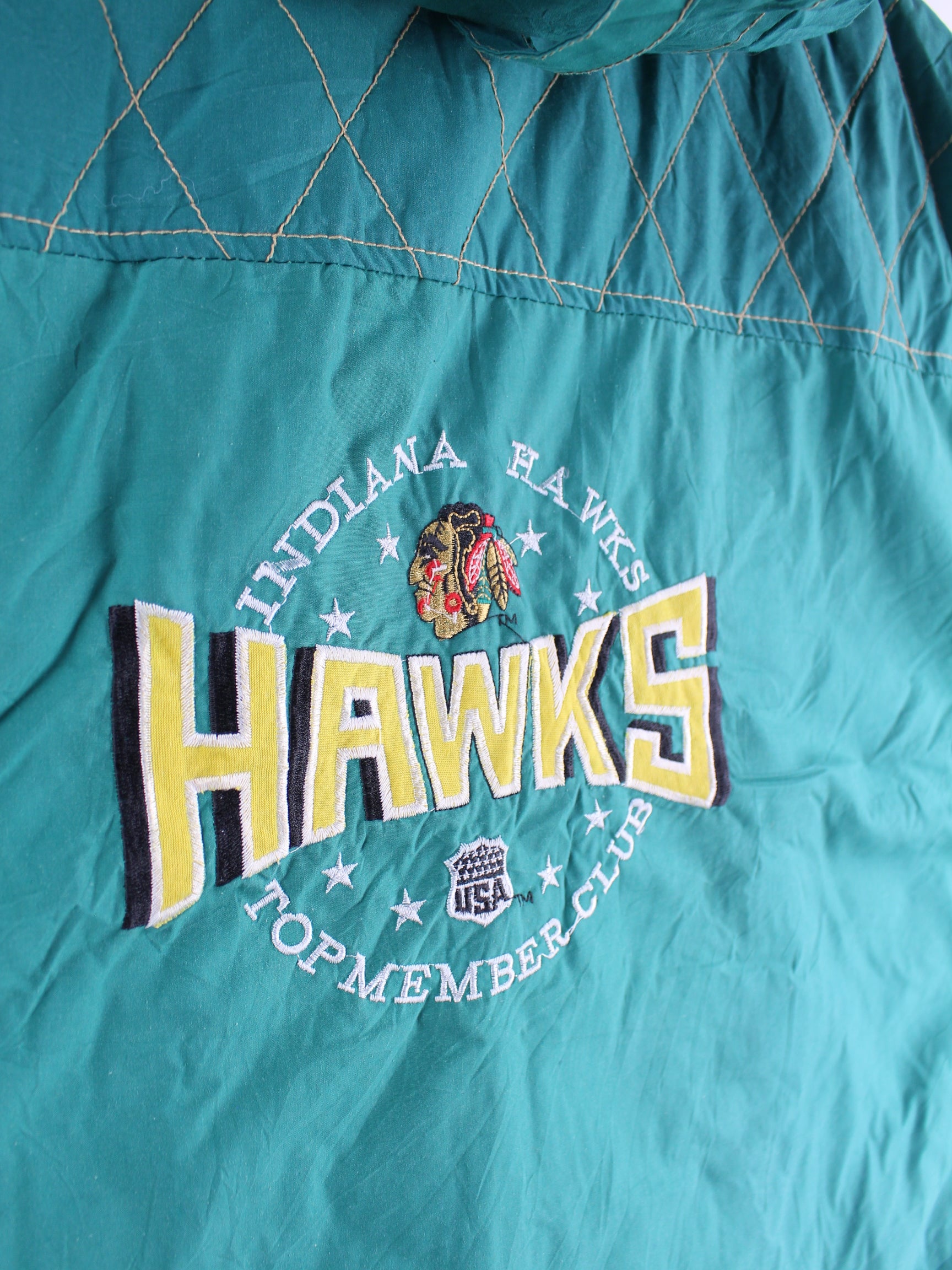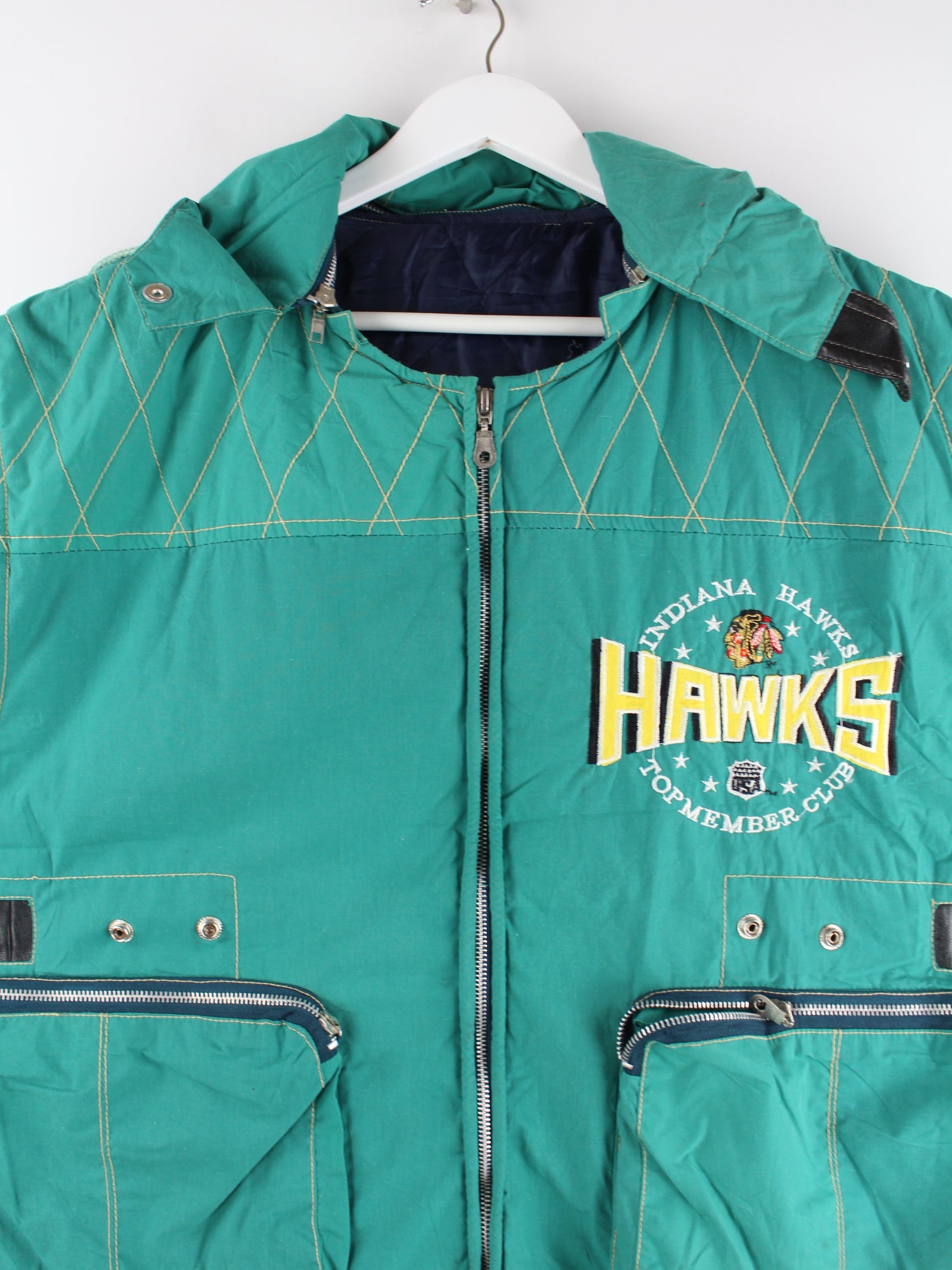 Vintage 80s Indiana Hawks Embroidered Weste Grün XL