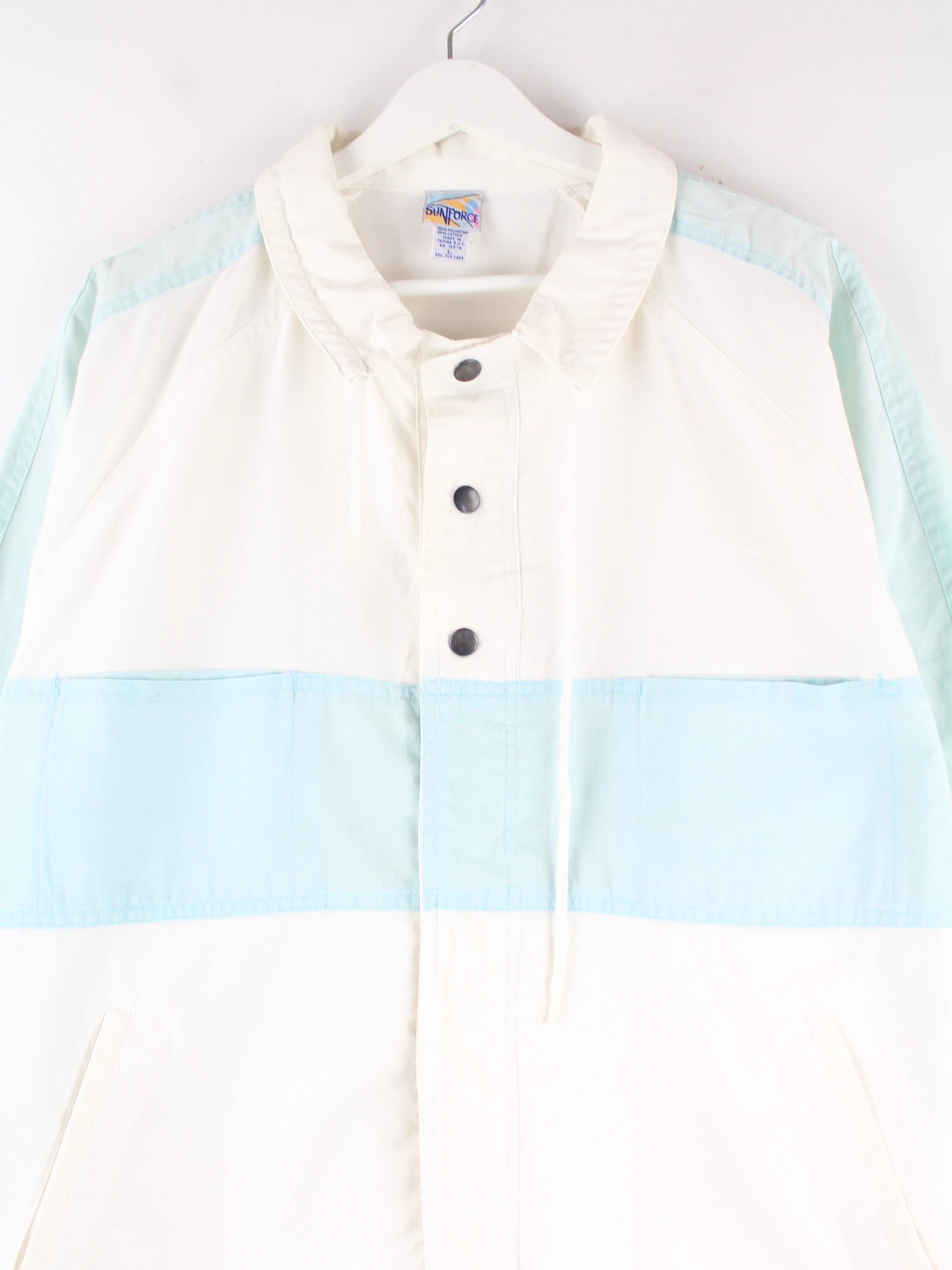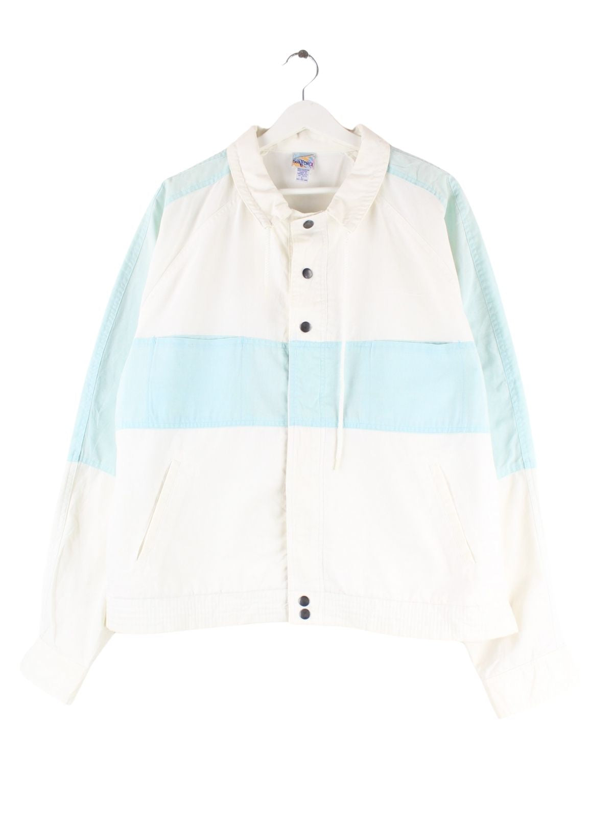 Vintage Leichte Jacke in Größe L aus den 80'ern. Sie ist aus einer Baumwollmischung gemacht und in Weiß im Bestand.