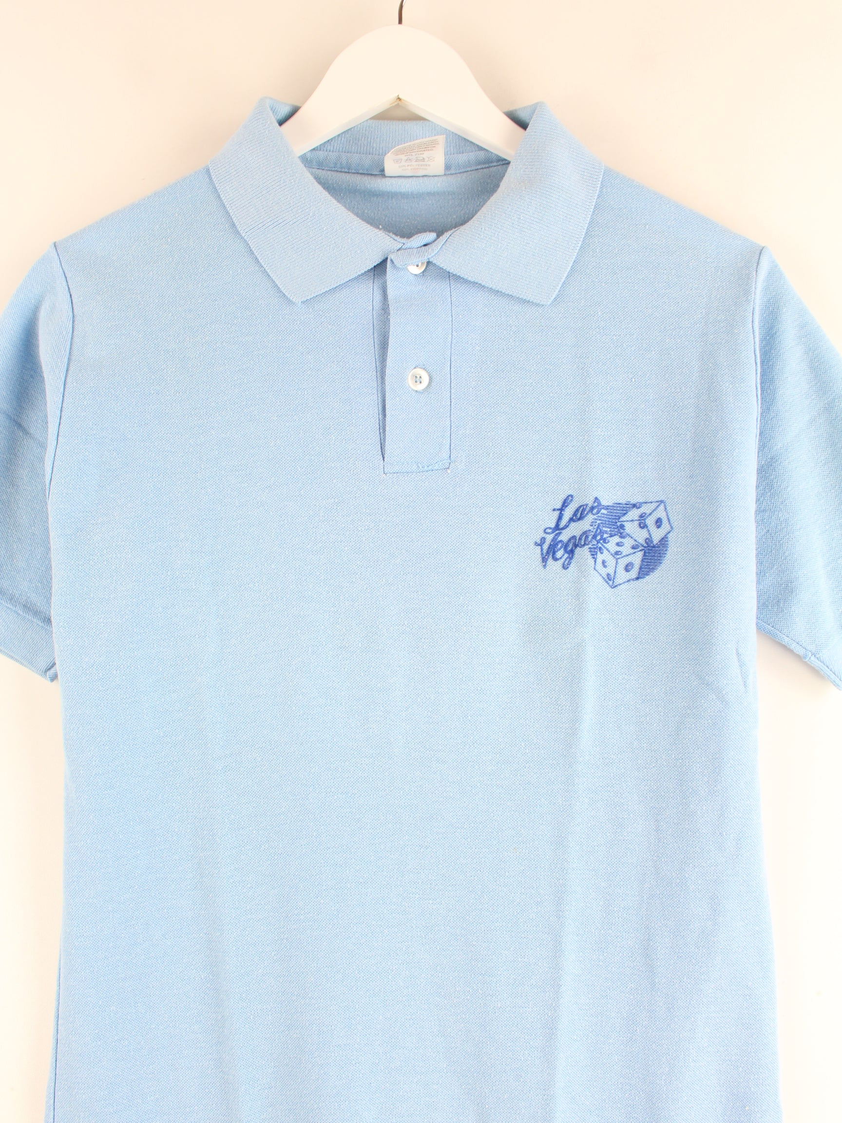 Vintage 80s Las Vegas Embroidered Single Stitch Polo Blue S
