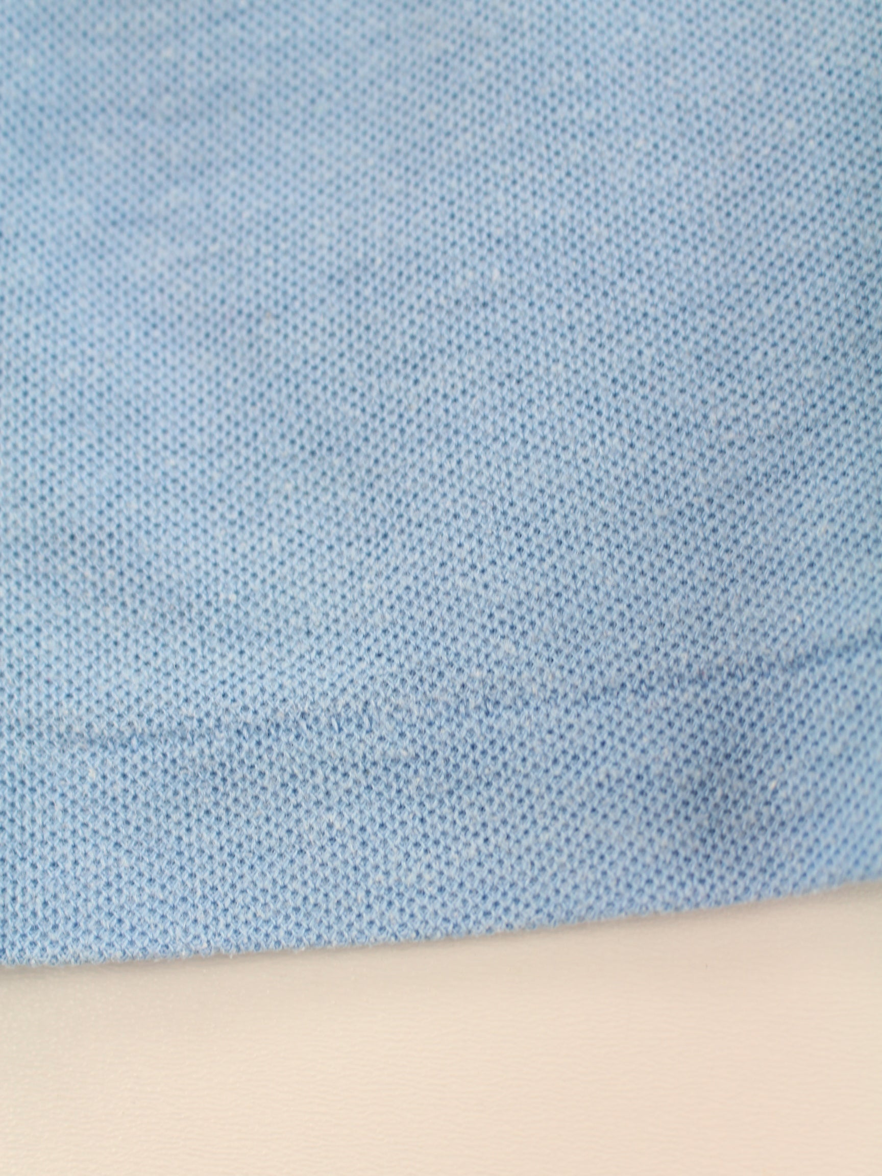 Vintage polo shirt with embroidery in size S from the 80's. It is made of cotton and is available from us in blue.
