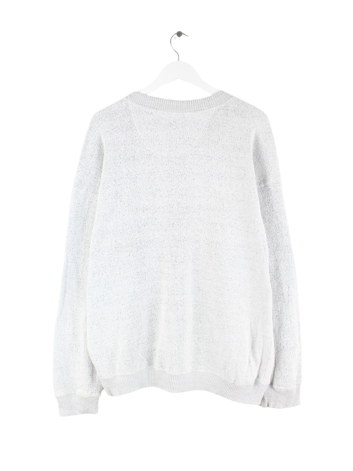 Vintage Sweater mit Stickereien in Größe XXL aus den 80'ern. Er ist aus einer Baumwollmischung gefertigt und in Grau in Stock.