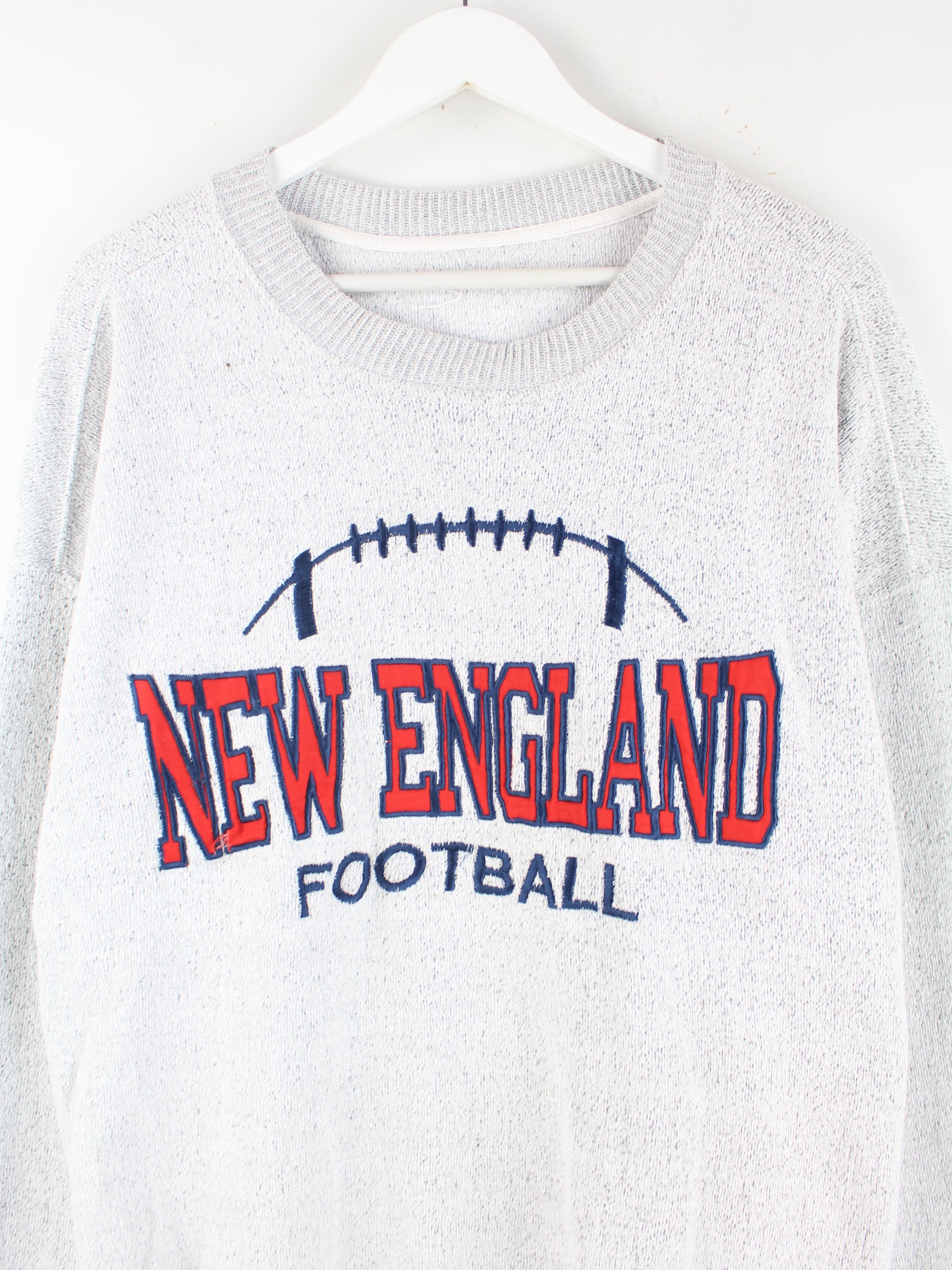 Vintage 80s New England Embroidered Sweater Grau XXL