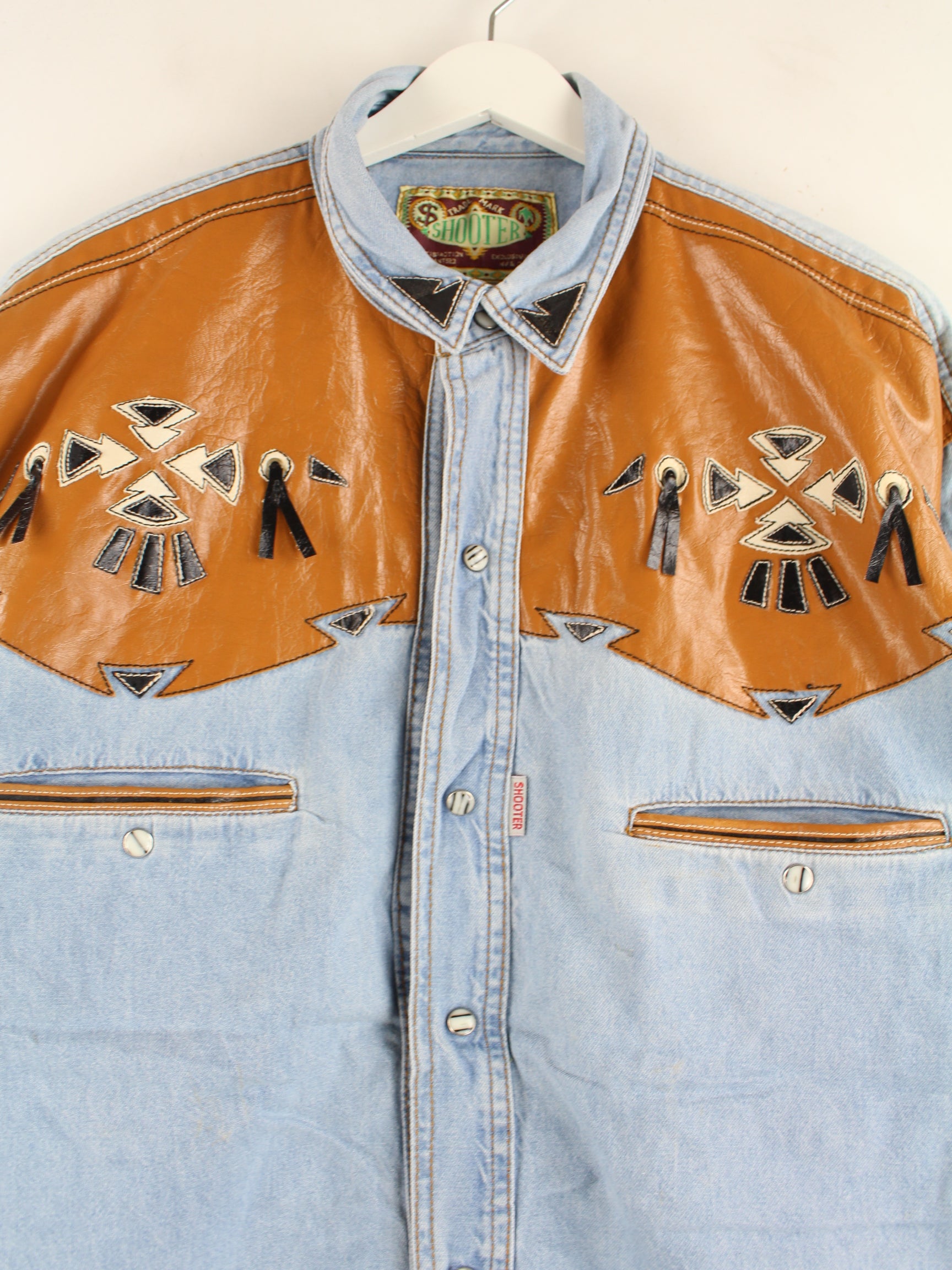Blue vintage casual shirt from the 80's in size L. It is made of cotton and is in good condition.