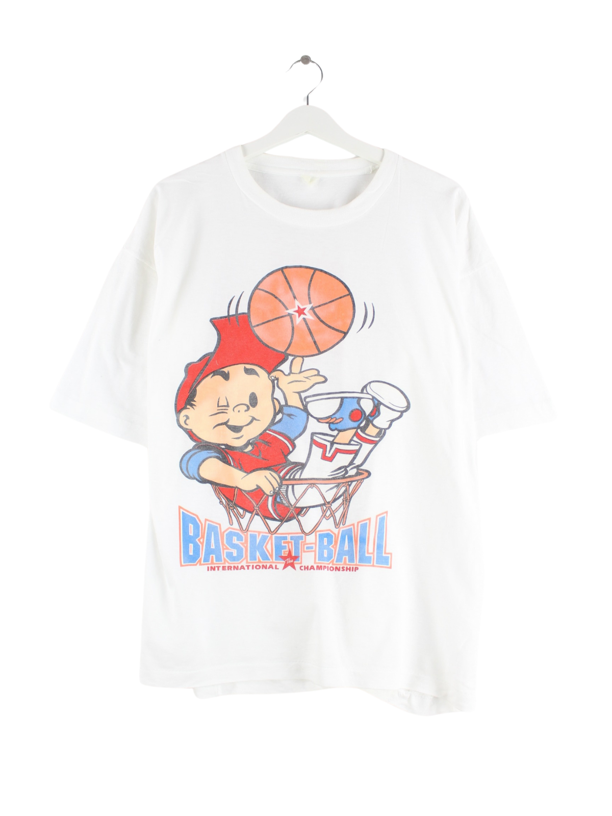 White vintage T-shirt from the 80's in size M. It is made of cotton and is in very good condition. With a chic basketball print.