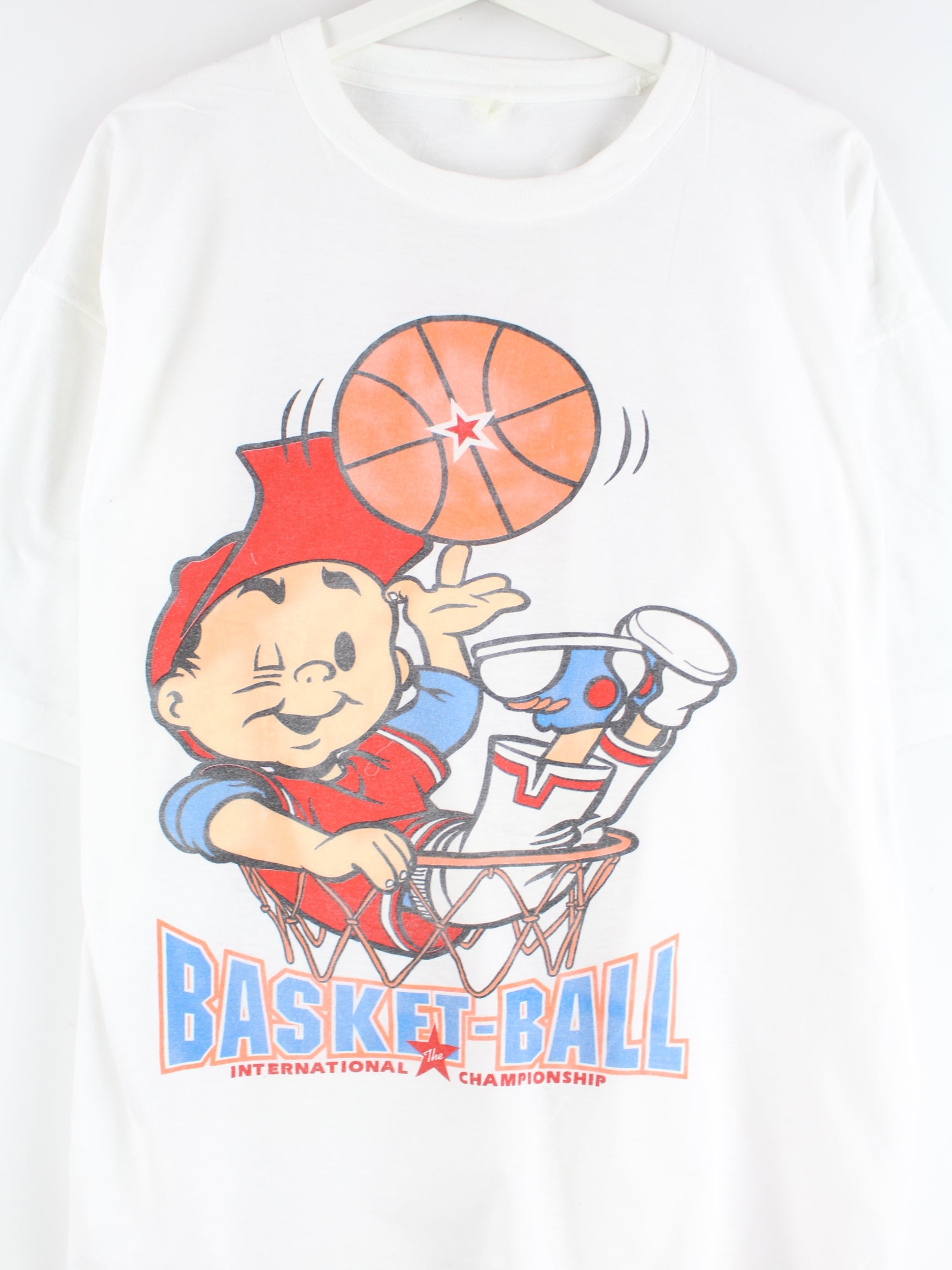 Vintage 80s Single Stitch Basketball Print T-Shirt White M
