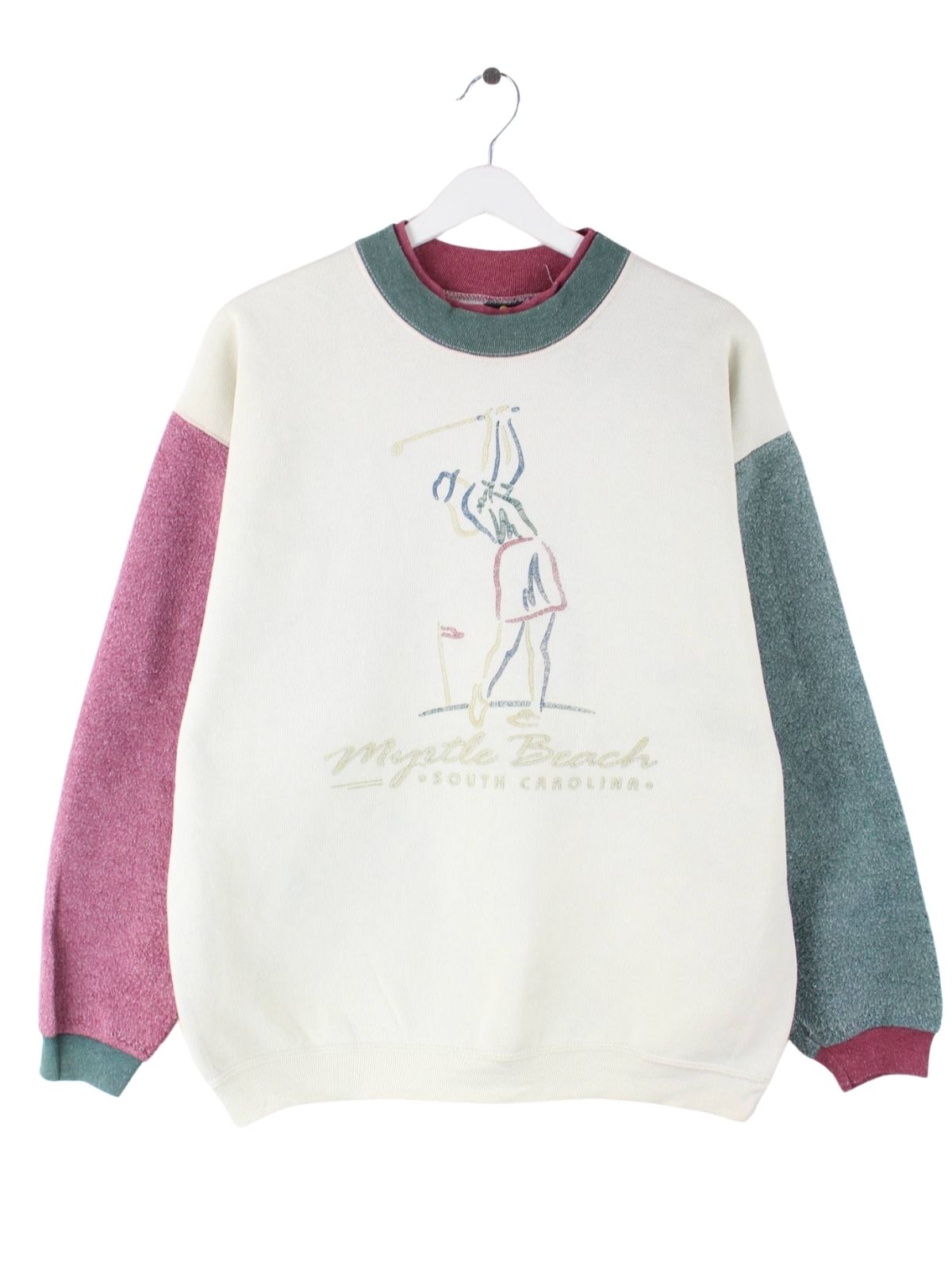 Vintage 80s South Carolina Golf Print Sweater Beige M
