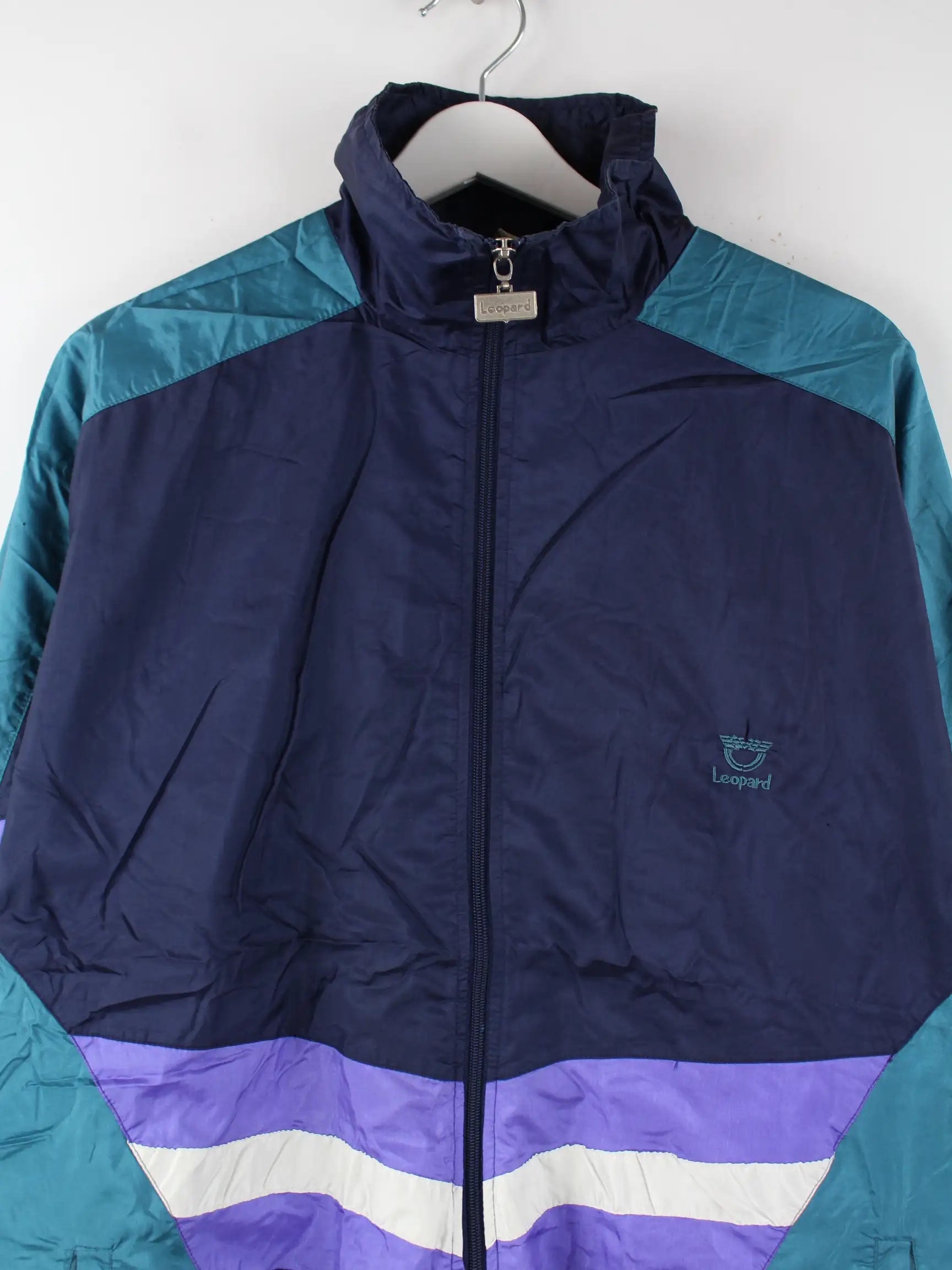 Blaue Vintage Trainingsjacke aus den 80'ern in Größe XXL. Sie ist aus Synthetik hergestellt und in gutem Zustand bei uns vorrätig.