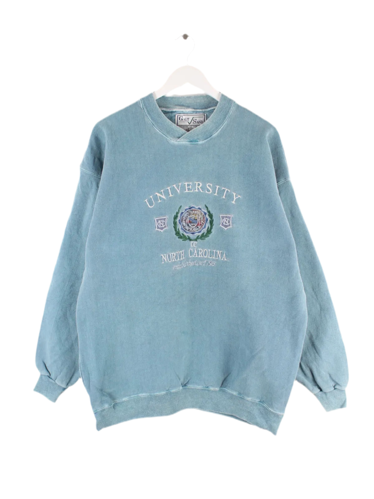 Vintage 80s University Carolina Embroidered Heavy Sweater Blau XXL