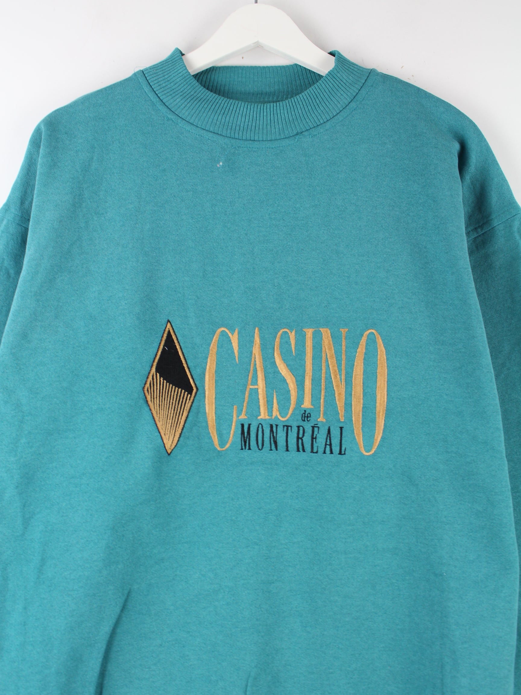 Vintage 80s Vintage Casino Montreal Embroidered Sweater Türkis M