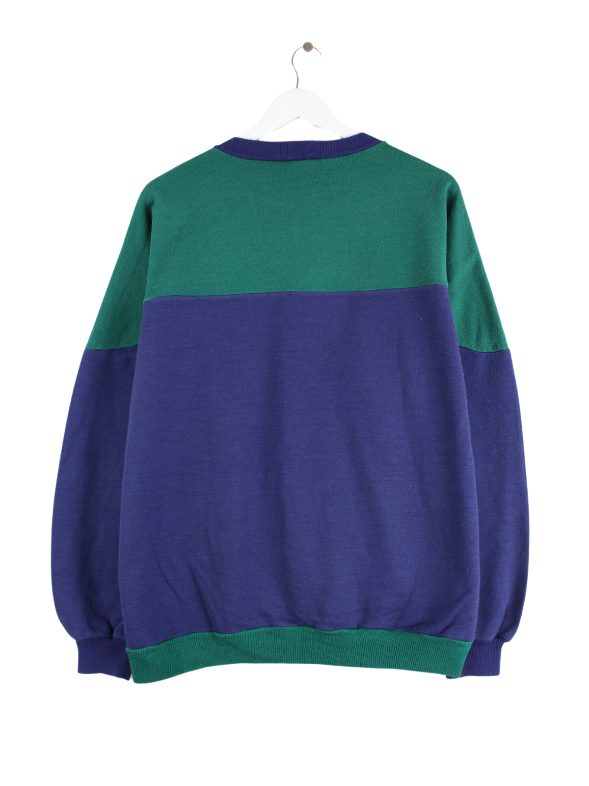 Vintage sweater with embroidered motifs in size L from the 80's. It is made from a cotton blend and is available from us in blue.