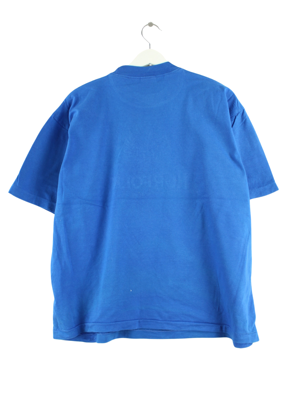 Blue vintage T-shirt with embroidered motifs from the 80's in size S. It is made of cotton and is in very good condition.