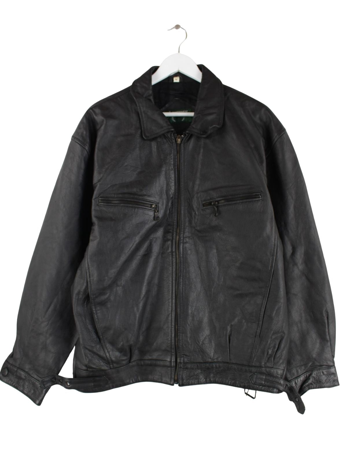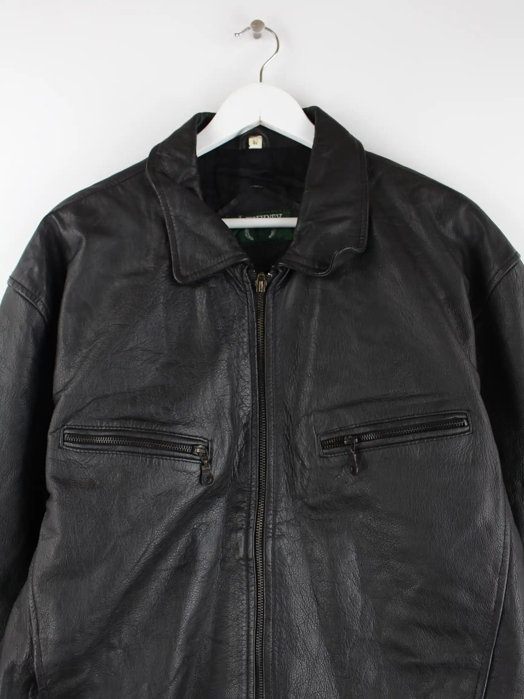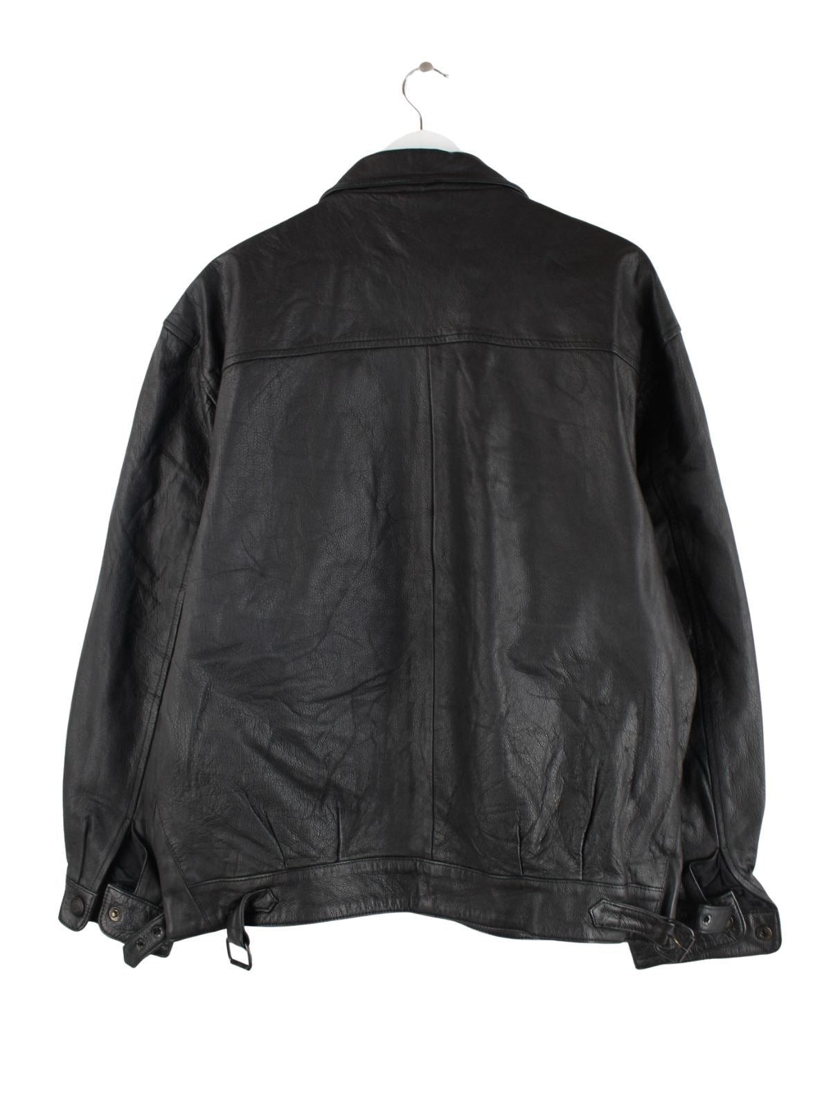 Vintage Jacke in Größe XL aus den 90'ern. Sie ist aus Leder gefertigt und in Schwarz vorrätig.