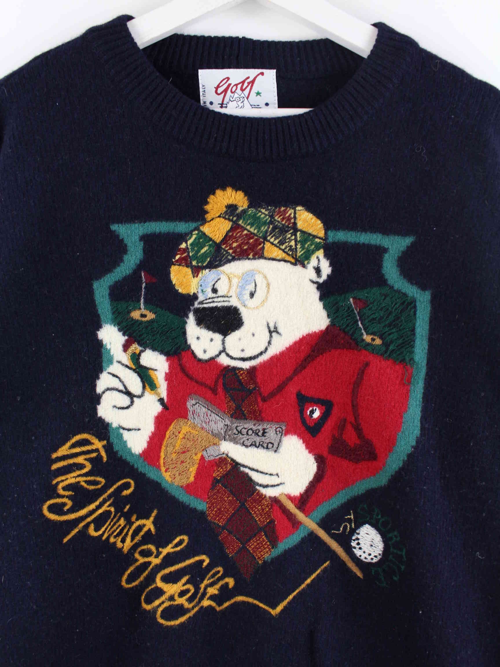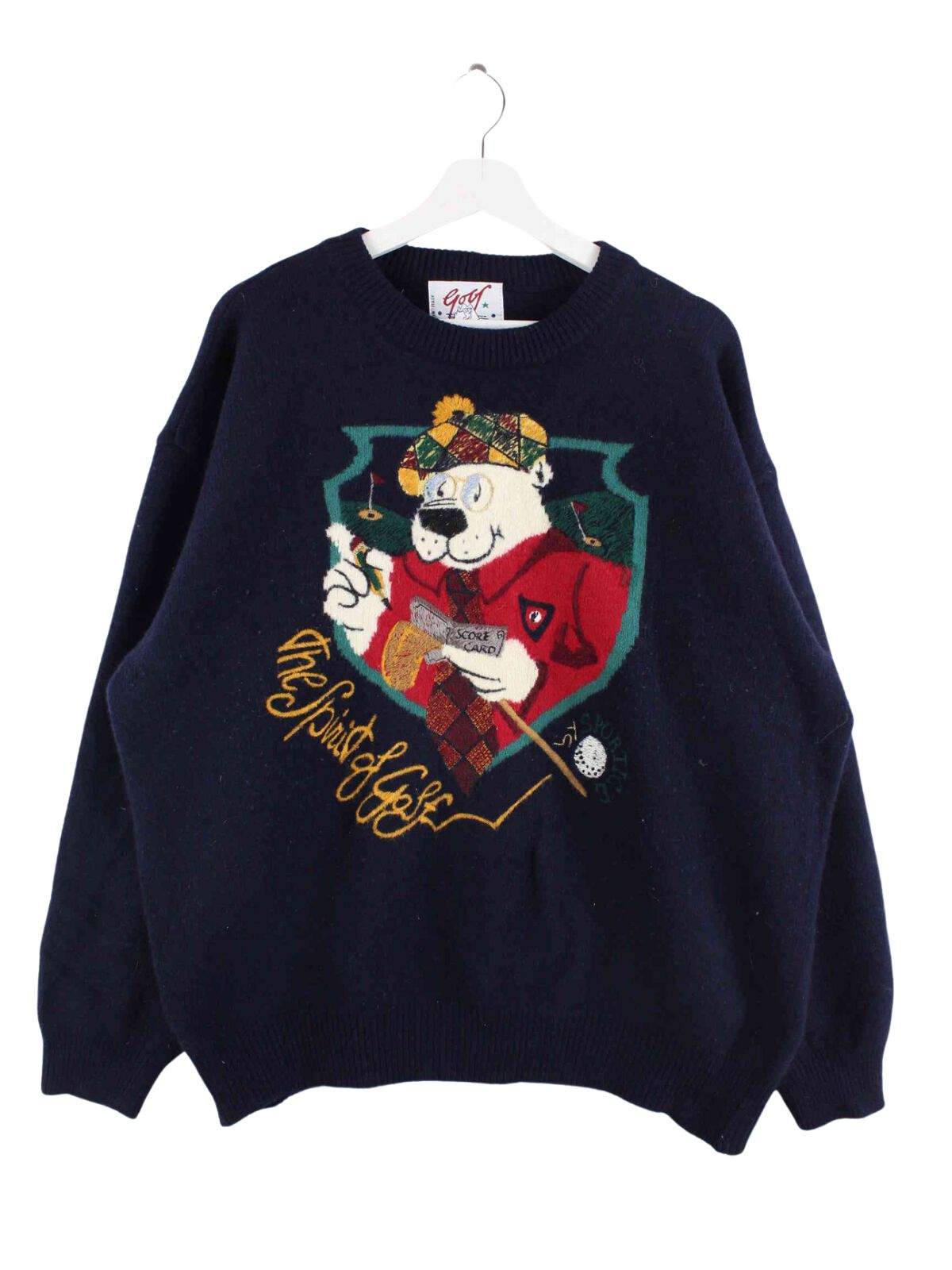 Vintage 90s Embroidered Golf Bear Sweater Blue L