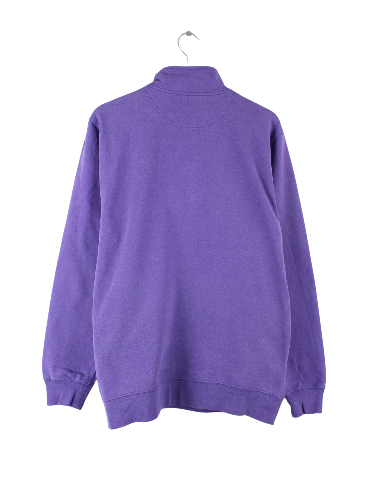 Blue vintage sweater with embroidery and short zipper from the 90's in size L. It is made of a cotton blend and is in good condition.