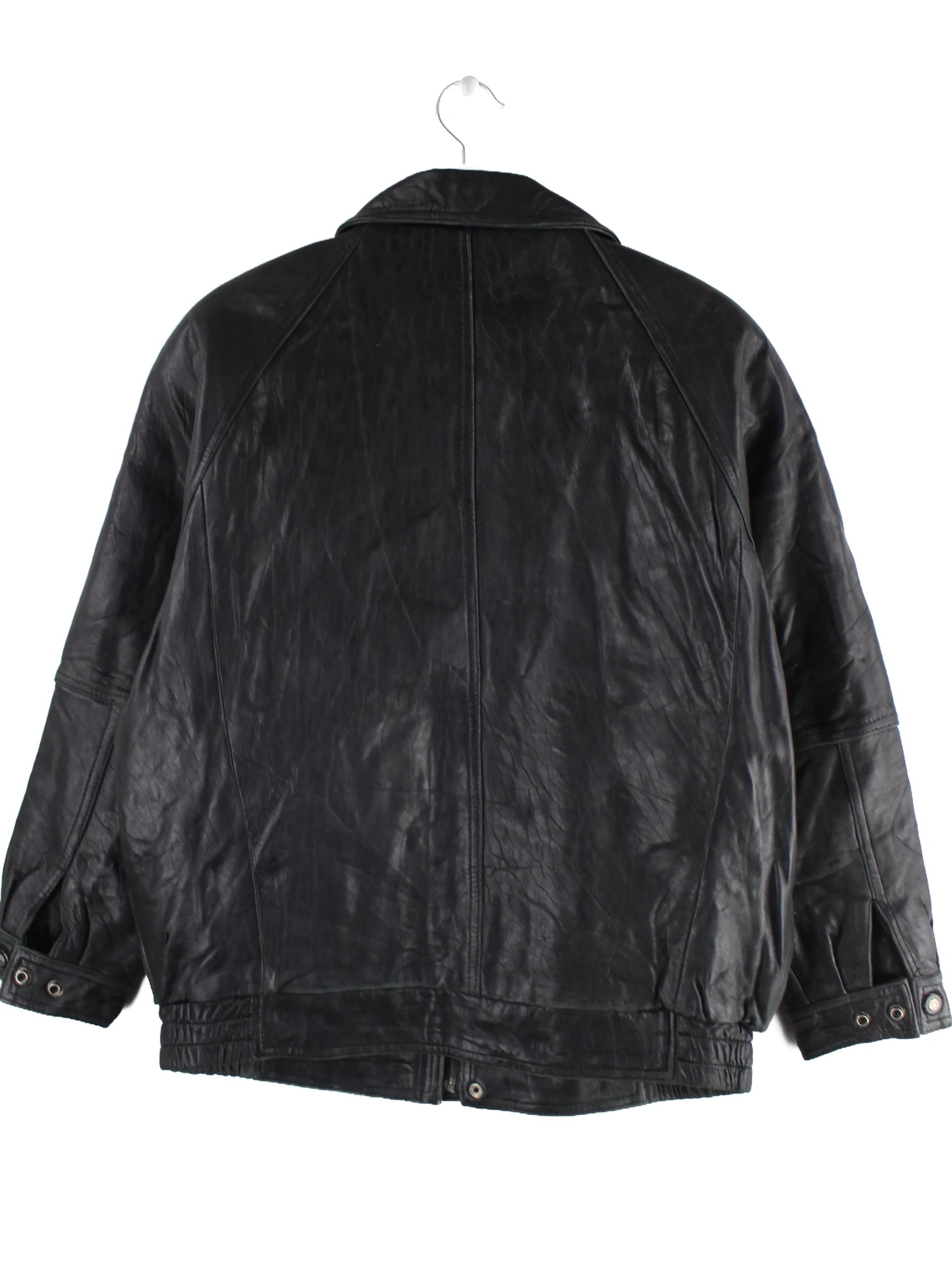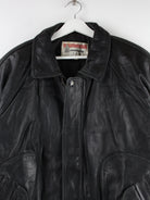 Schwarze Vintage Jacke aus den 90'ern in Größe XL. Sie ist aus Leder hergestellt und in sehr gutem Zustand bei uns zu bekommen.