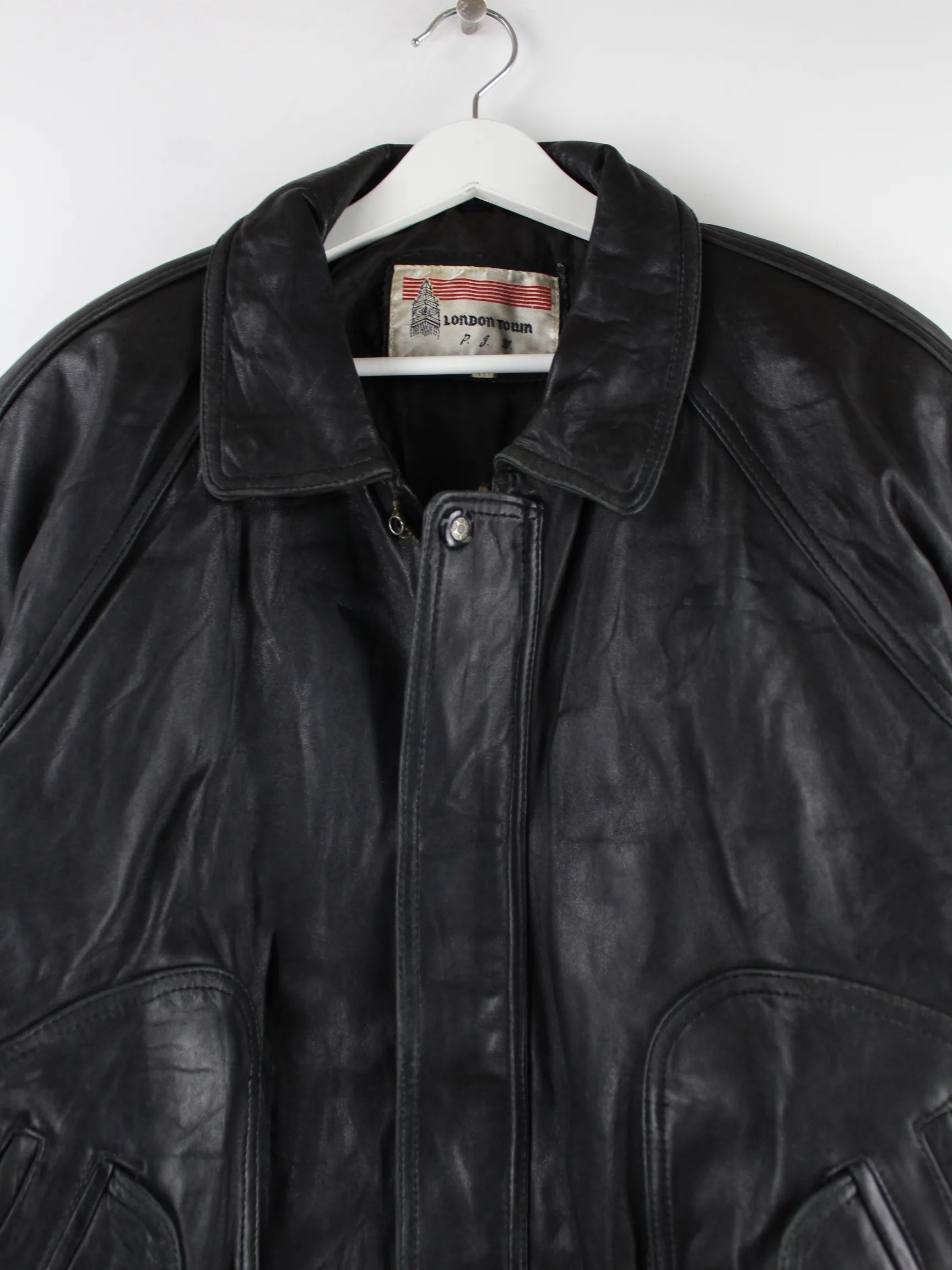 Vintage 90s London Town Leder Jacke Schwarz XL