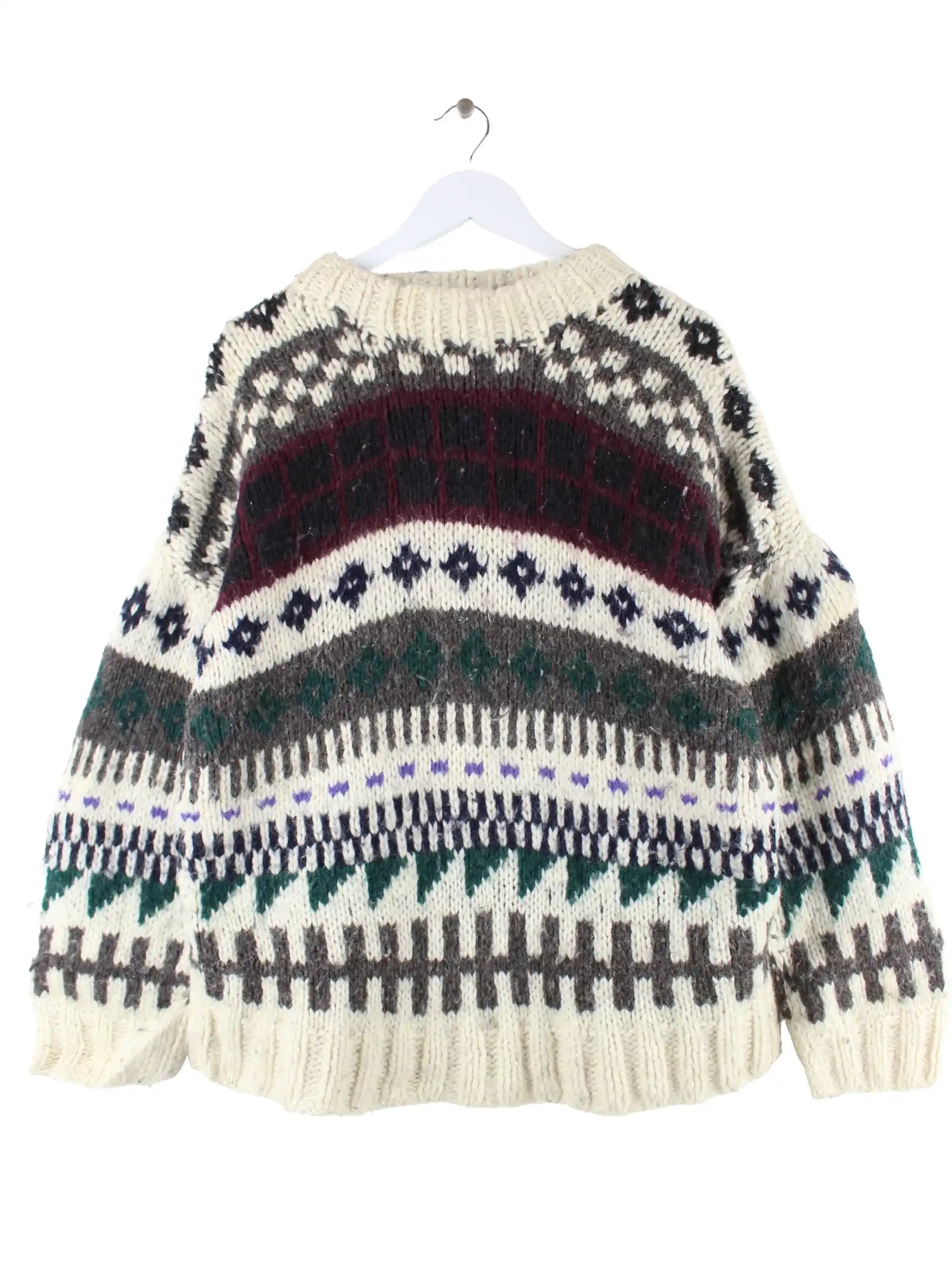 Mehrfarbiger Vintage Pullover aus den 90'ern in Größe L. Er ist aus Wolle und in gutem Zustand zu bekommen.