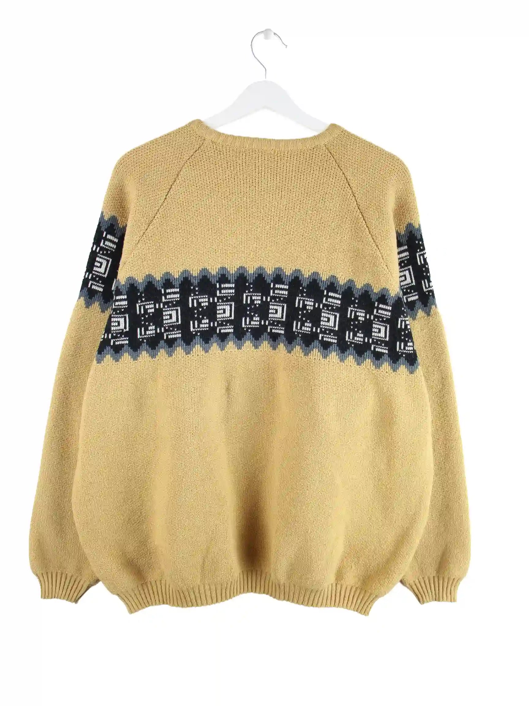 Vintage Pullover in Größe L aus den 90'ern. Er ist aus Acryl gefertigt und in Braun zu bekommen.