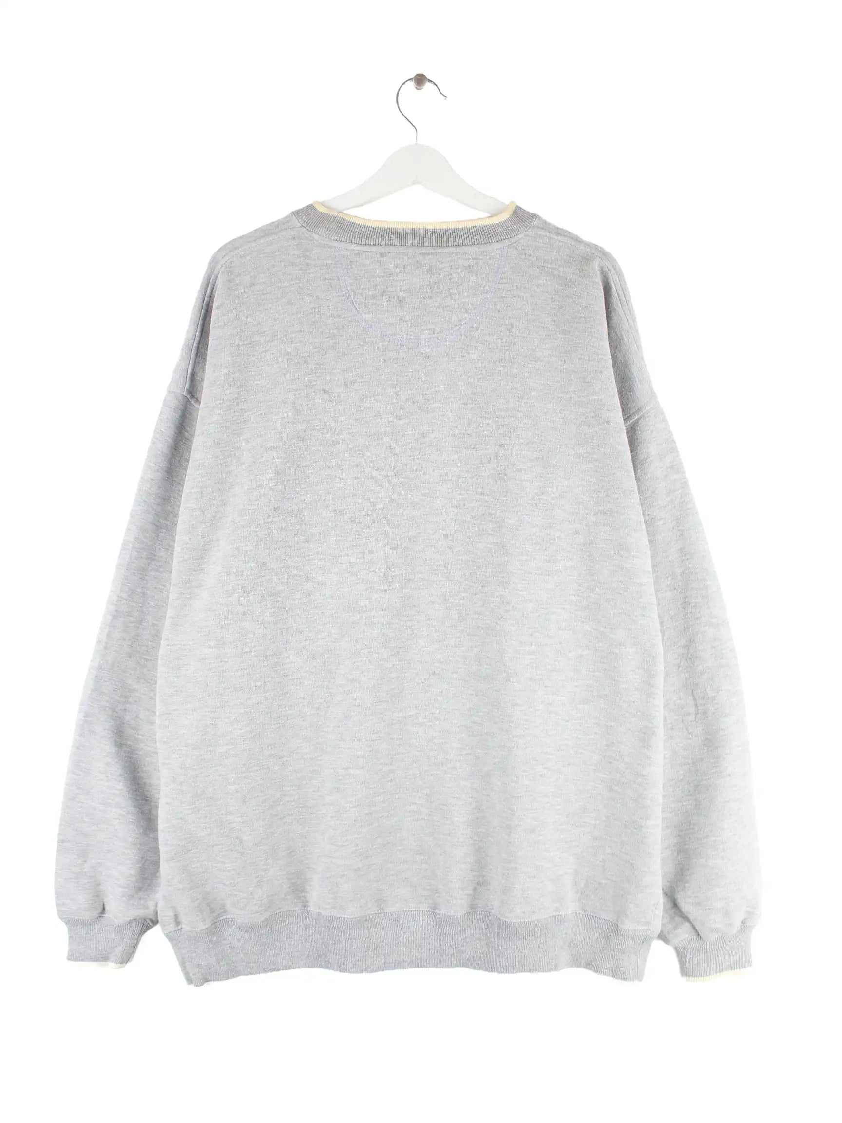 Vintage Sweater in Größe XXL aus den 90'ern. Er ist aus einer Baumwollmischung produziert und in Grau vorrätig. Mit seltenem Tahoe Print.