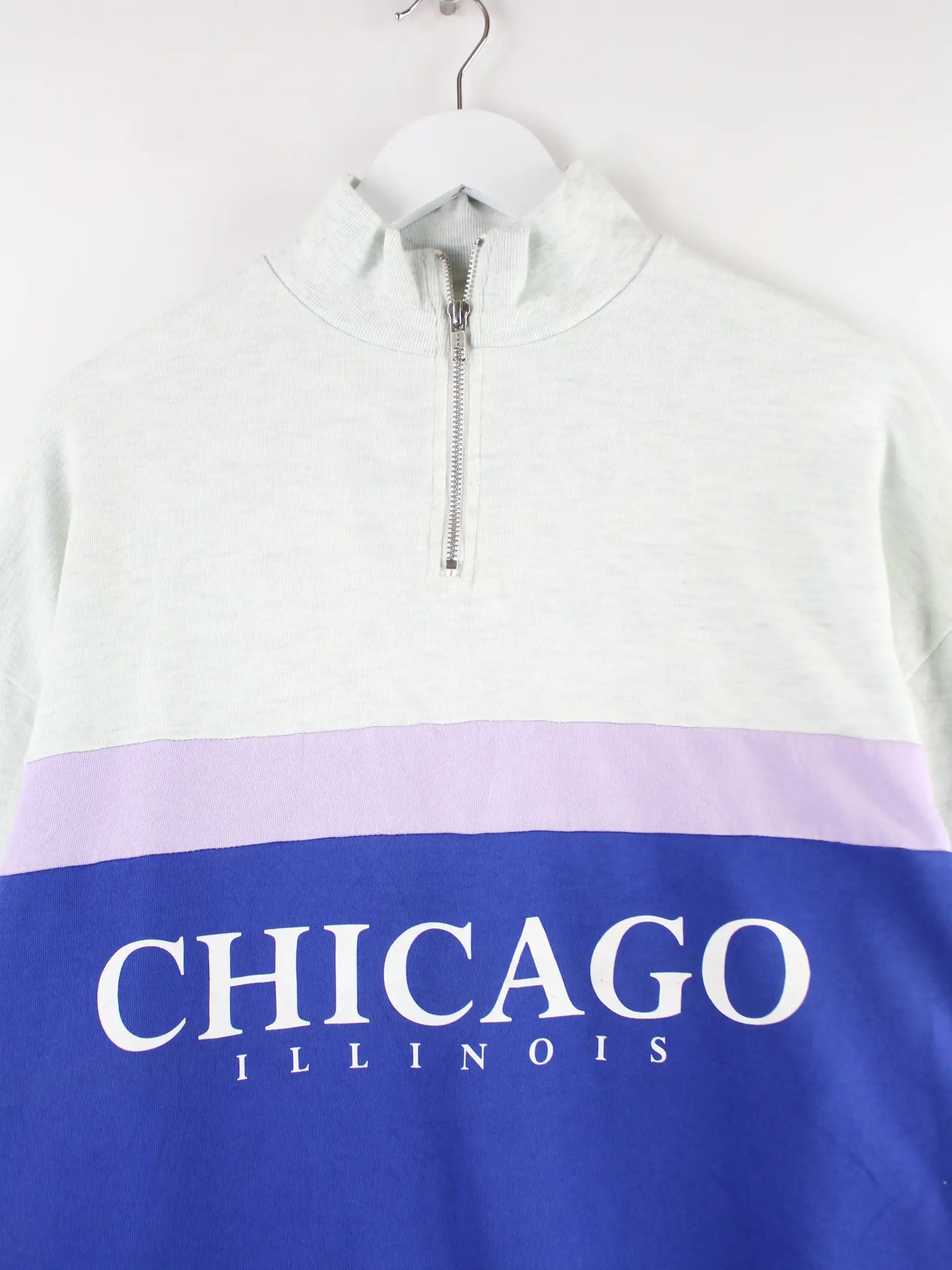 Vintage Chicago Illinois Print Half Zip Sweater Grau M
