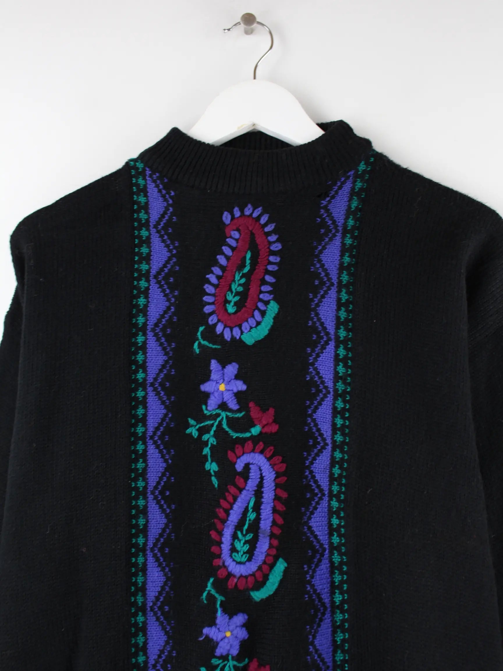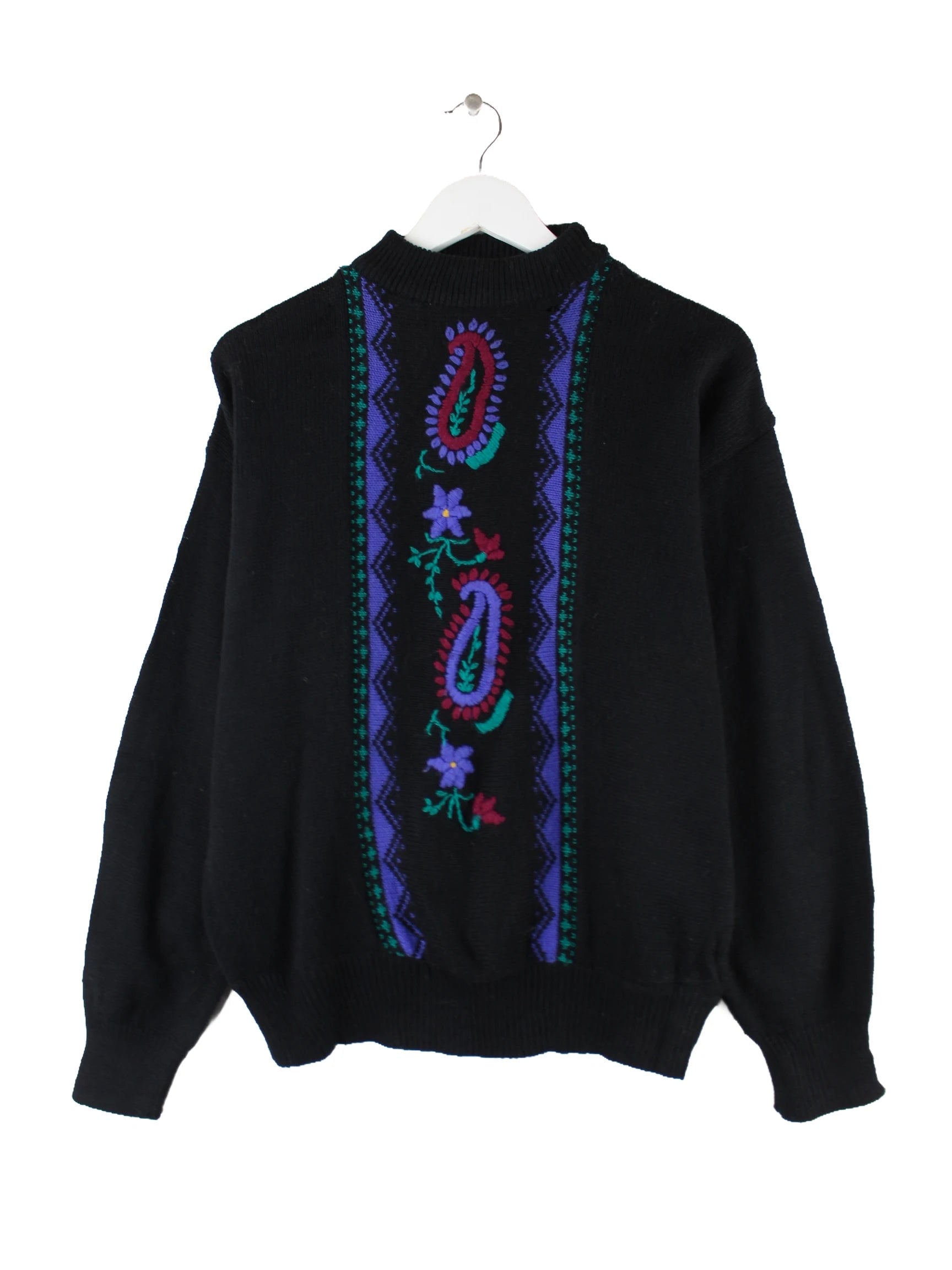Vintage Pullover in Größe L aus den 80'ern. Er ist aus Acryl hergestellt und in Schwarz in Stock.