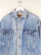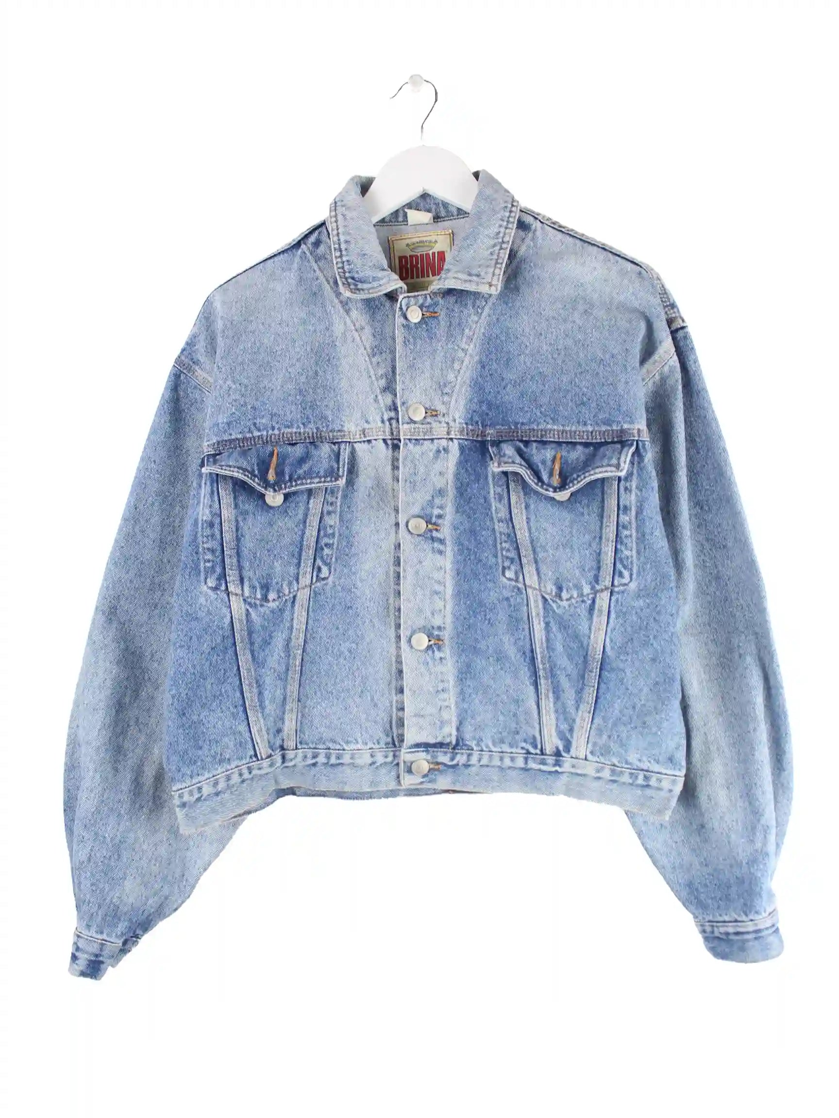 Blaue Vintage Jacke aus den 90'ern in Größe M. Sie ist aus Baumwolle hergestellt und in sehr gutem Zustand bei uns vorrätig.