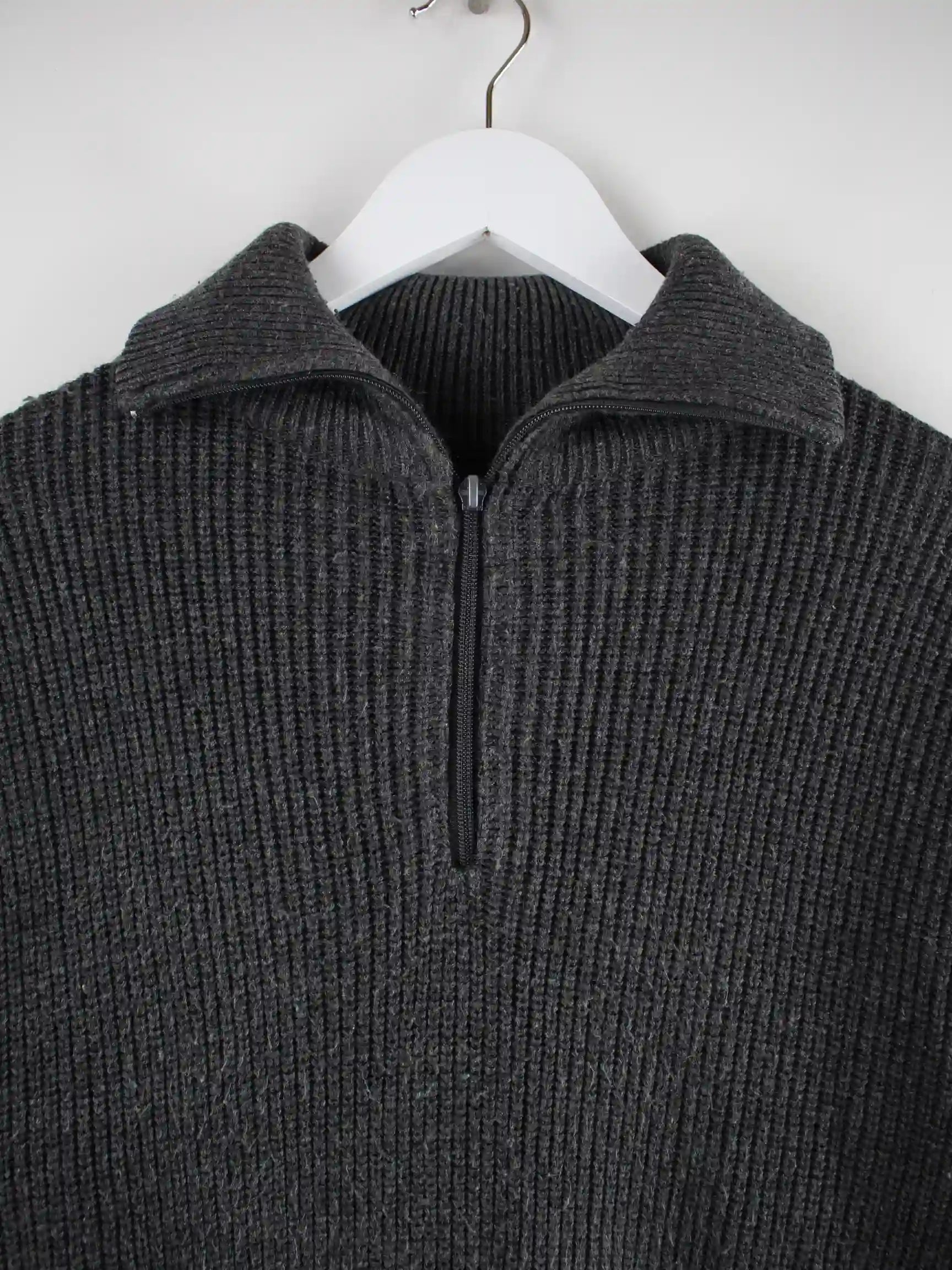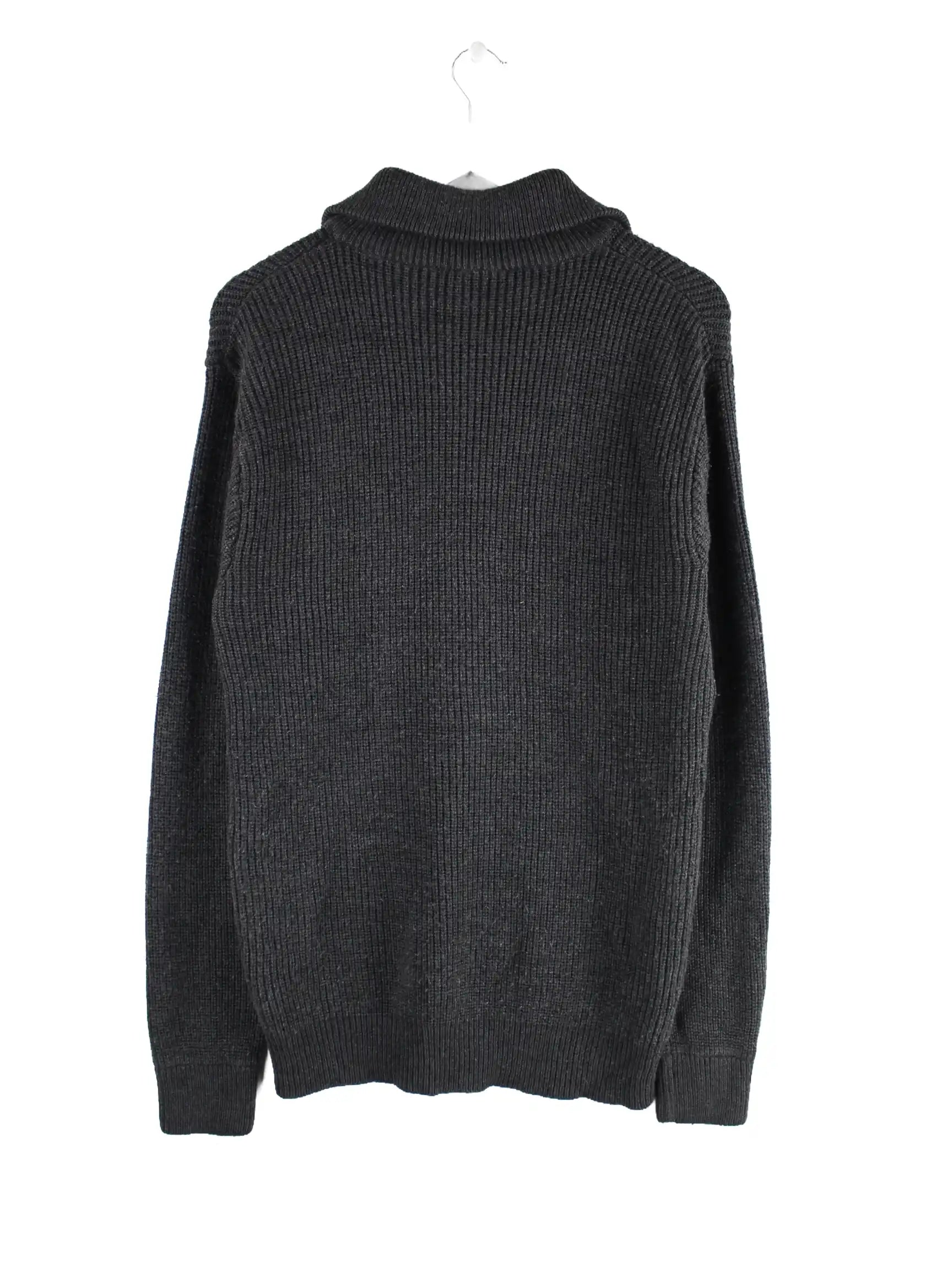 Grauer Vintage Pullover mit halbem Reißverschluß in Größe M. Er ist aus Acryl produziert und in gutem Zustand zu bekommen.