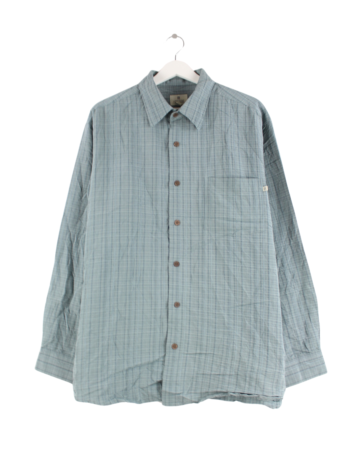 Blue vintage leisure shirt in size L. It is made of cotton and in very good condition.