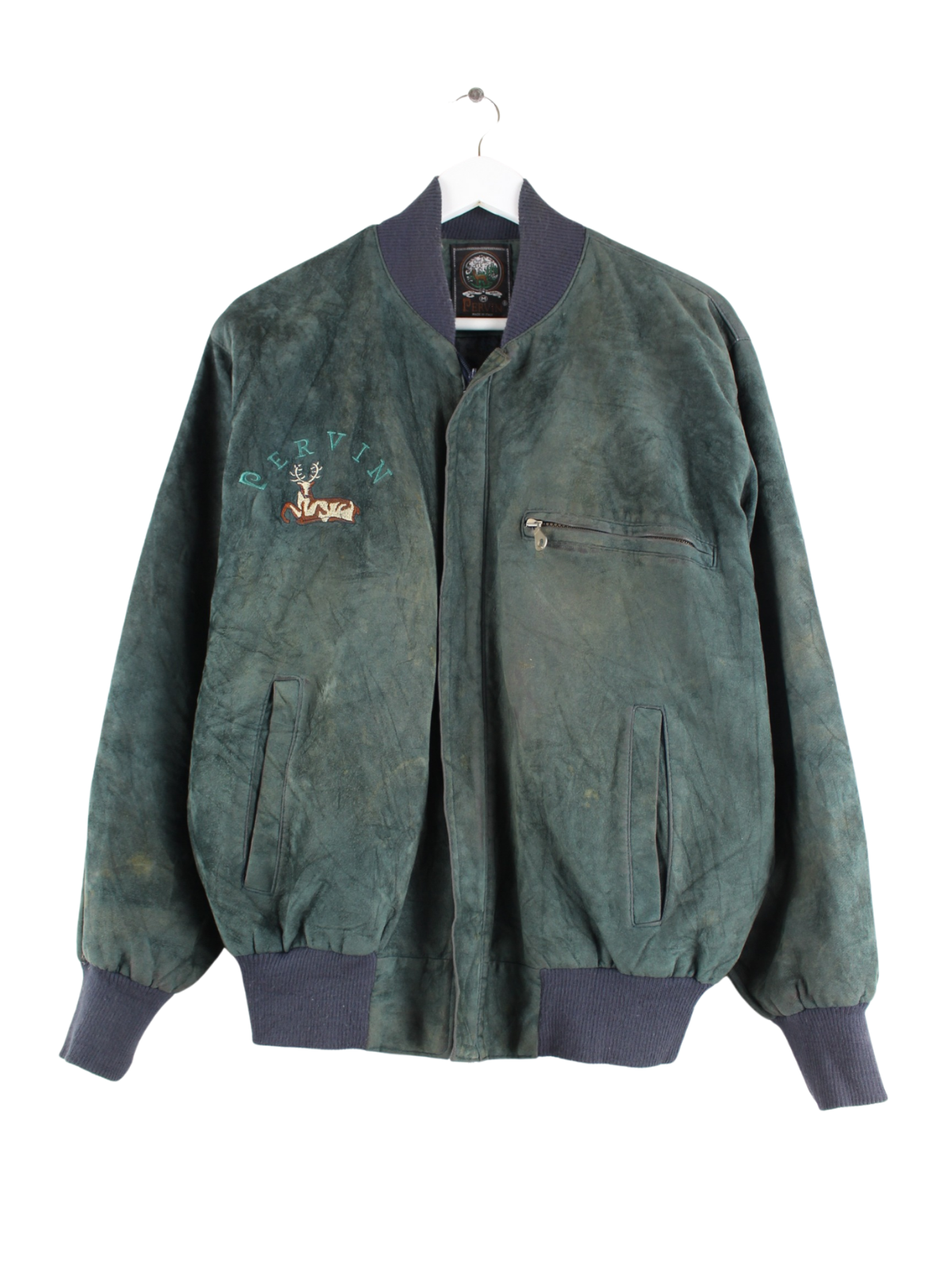 Vintage jacket in size M. It is made of synthetic material and comes in green.