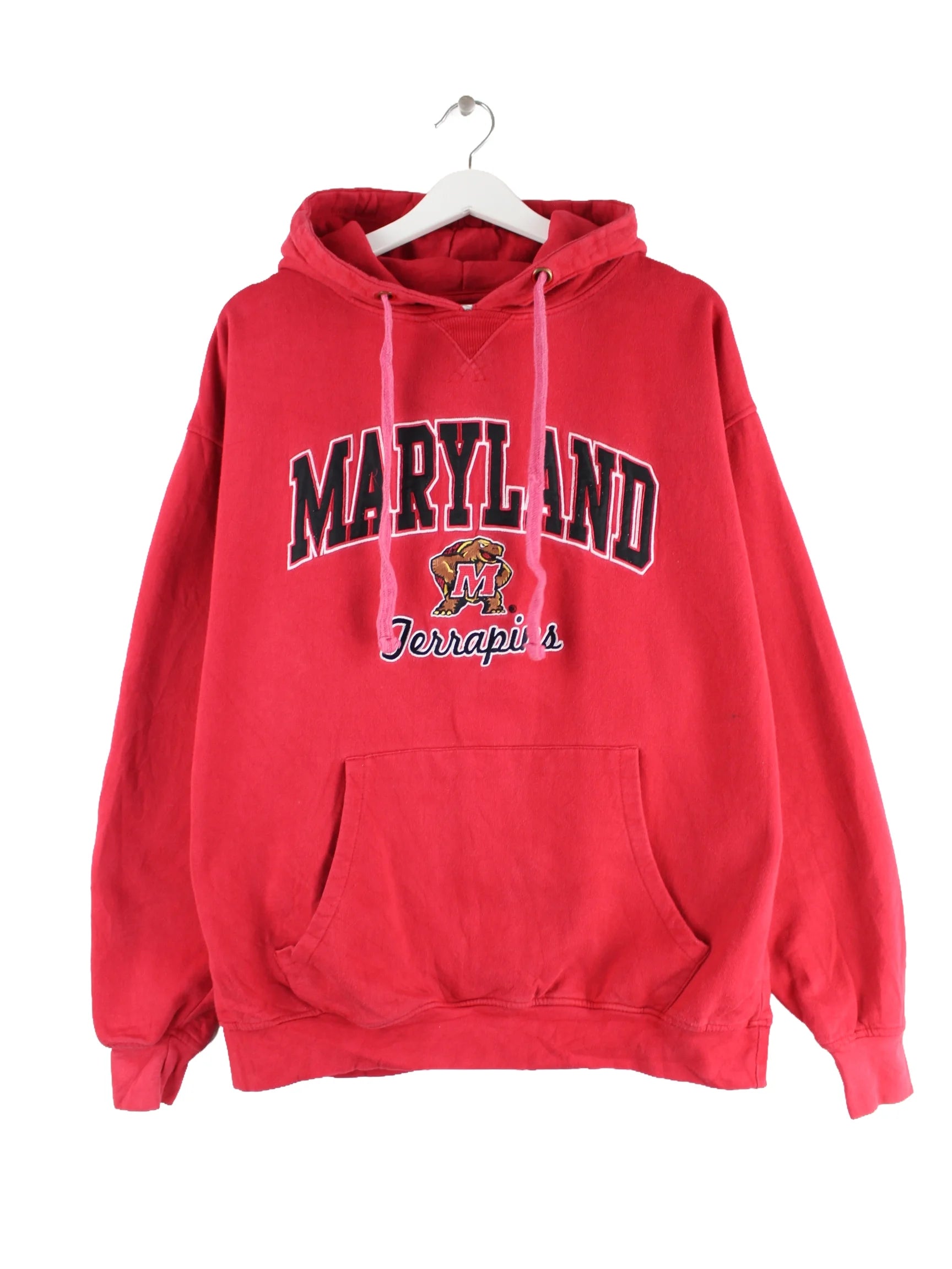 Vintage Hoodie in Größe L. Er ist aus einer Baumwollmischung gefertigt und in Rot vorrätig.