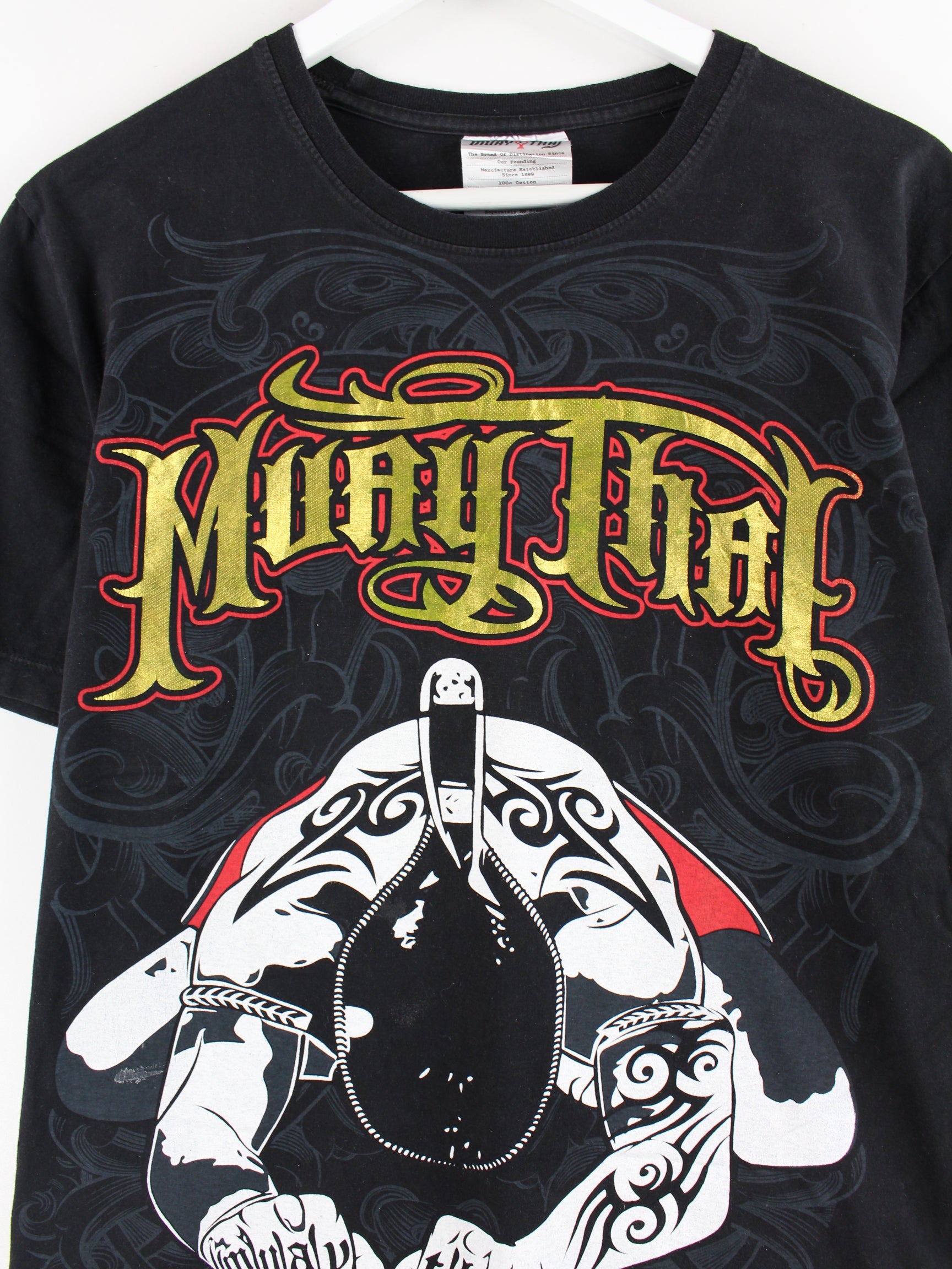 Vintage Muay Thai Print T-Shirt Black S