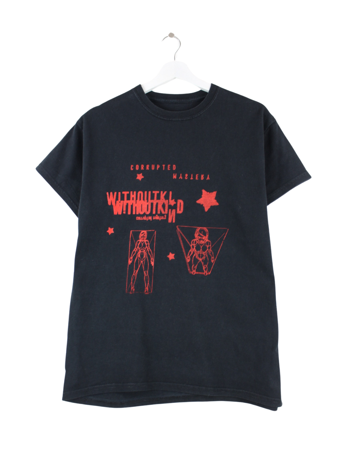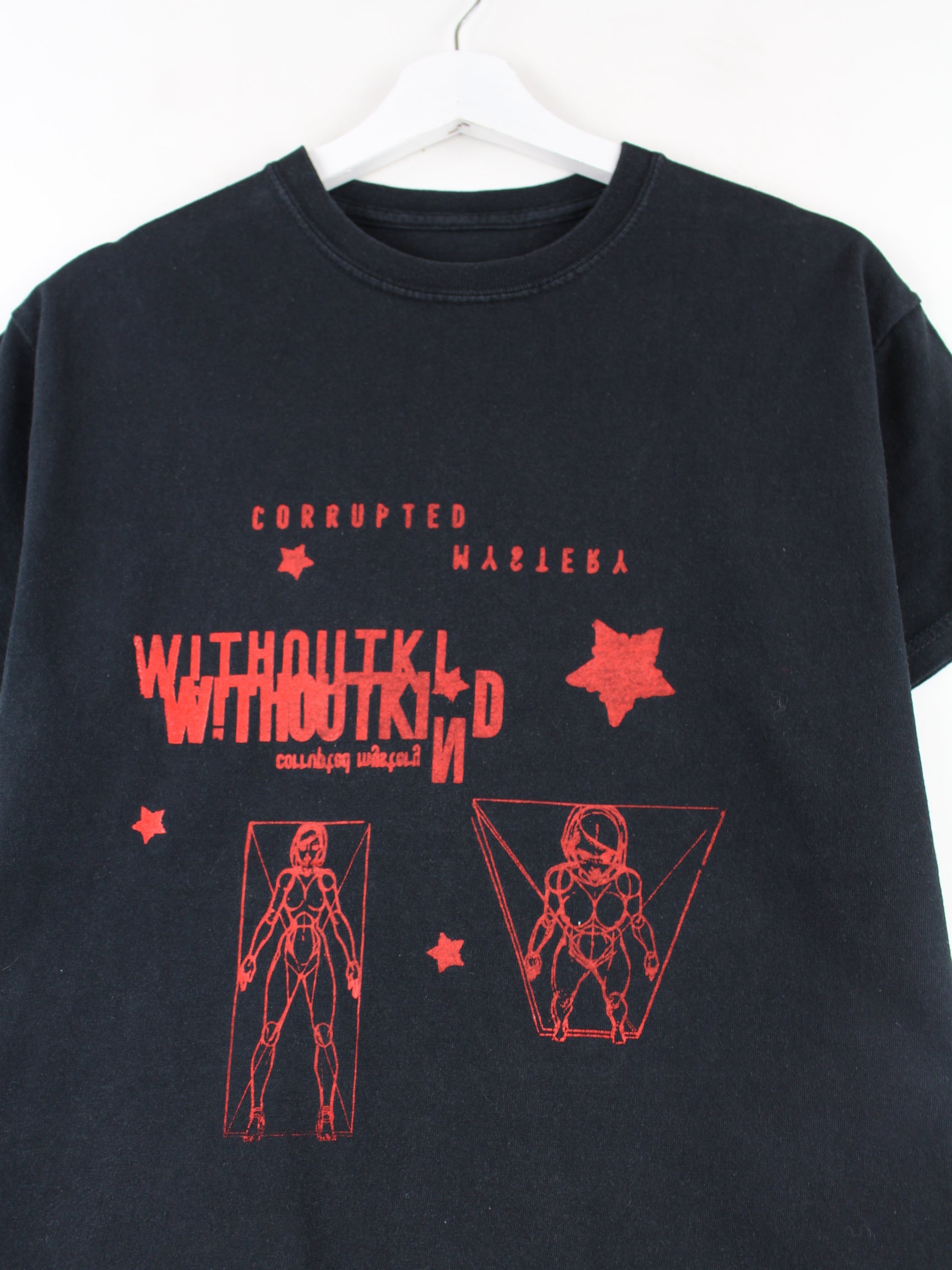 Vintage T-shirt in size M. It is made of cotton and available in black. With a chic mystery print.