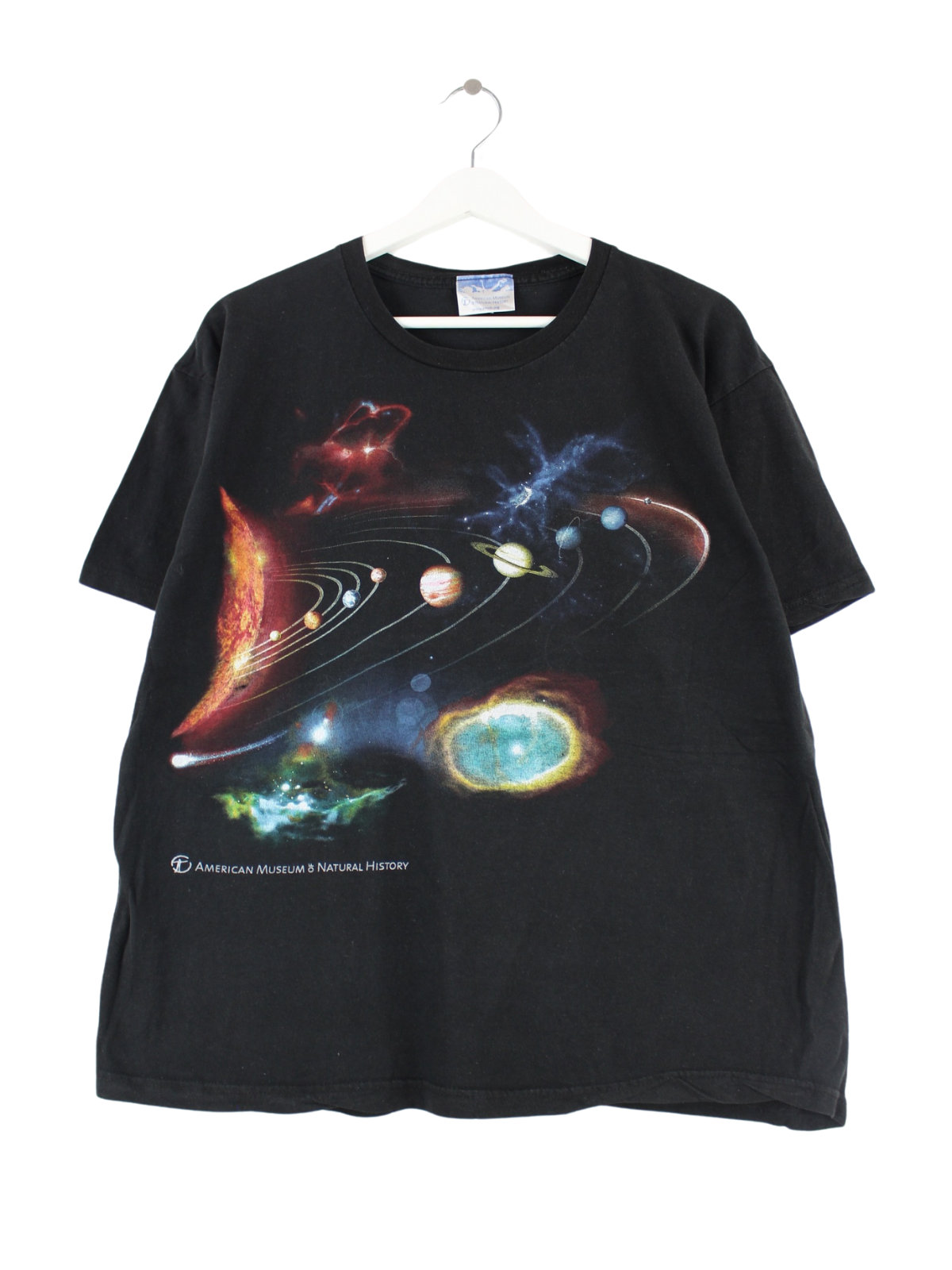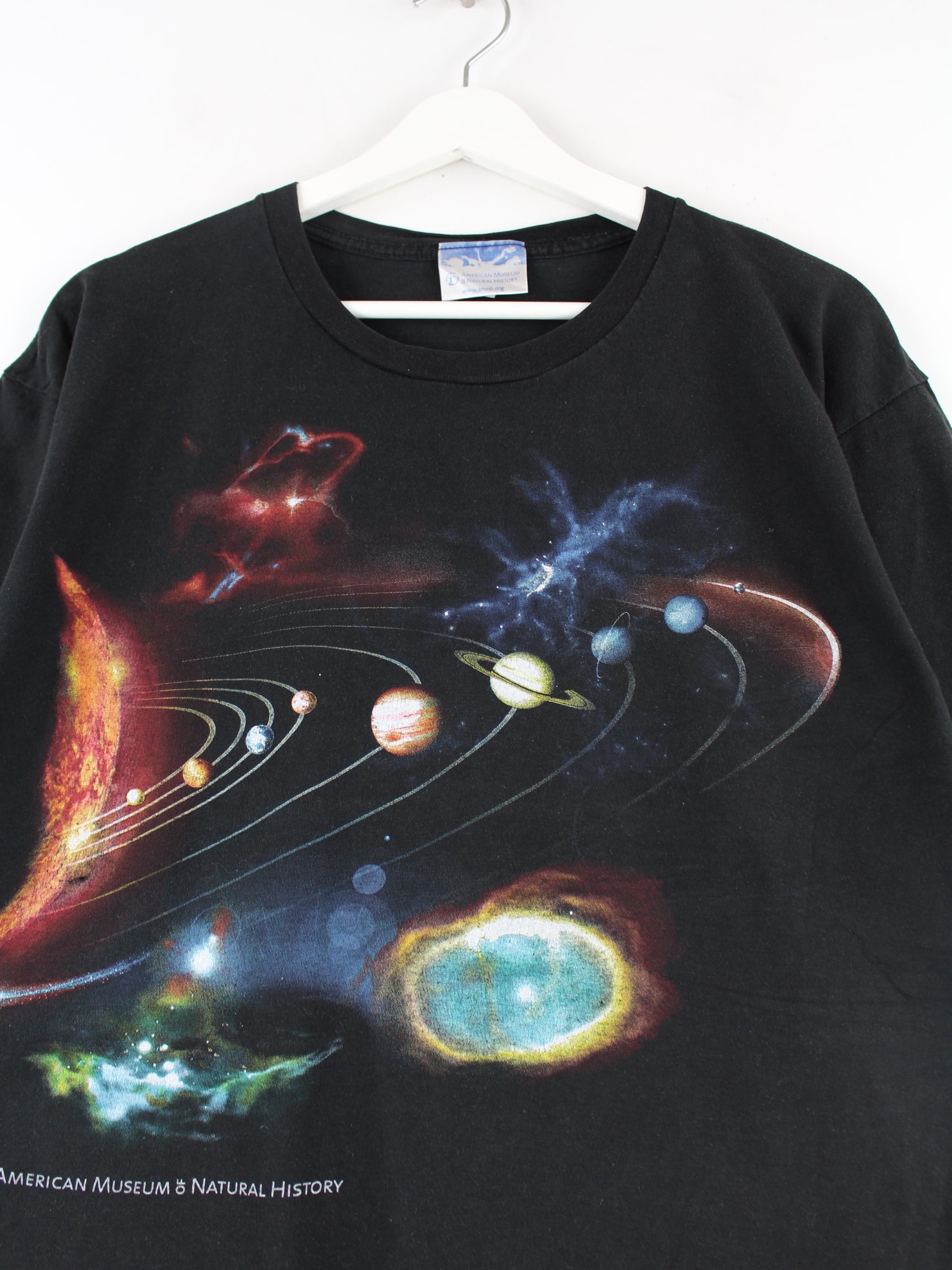 Black vintage T-shirt in size M. It is made of cotton and is in good condition. With a great history print.