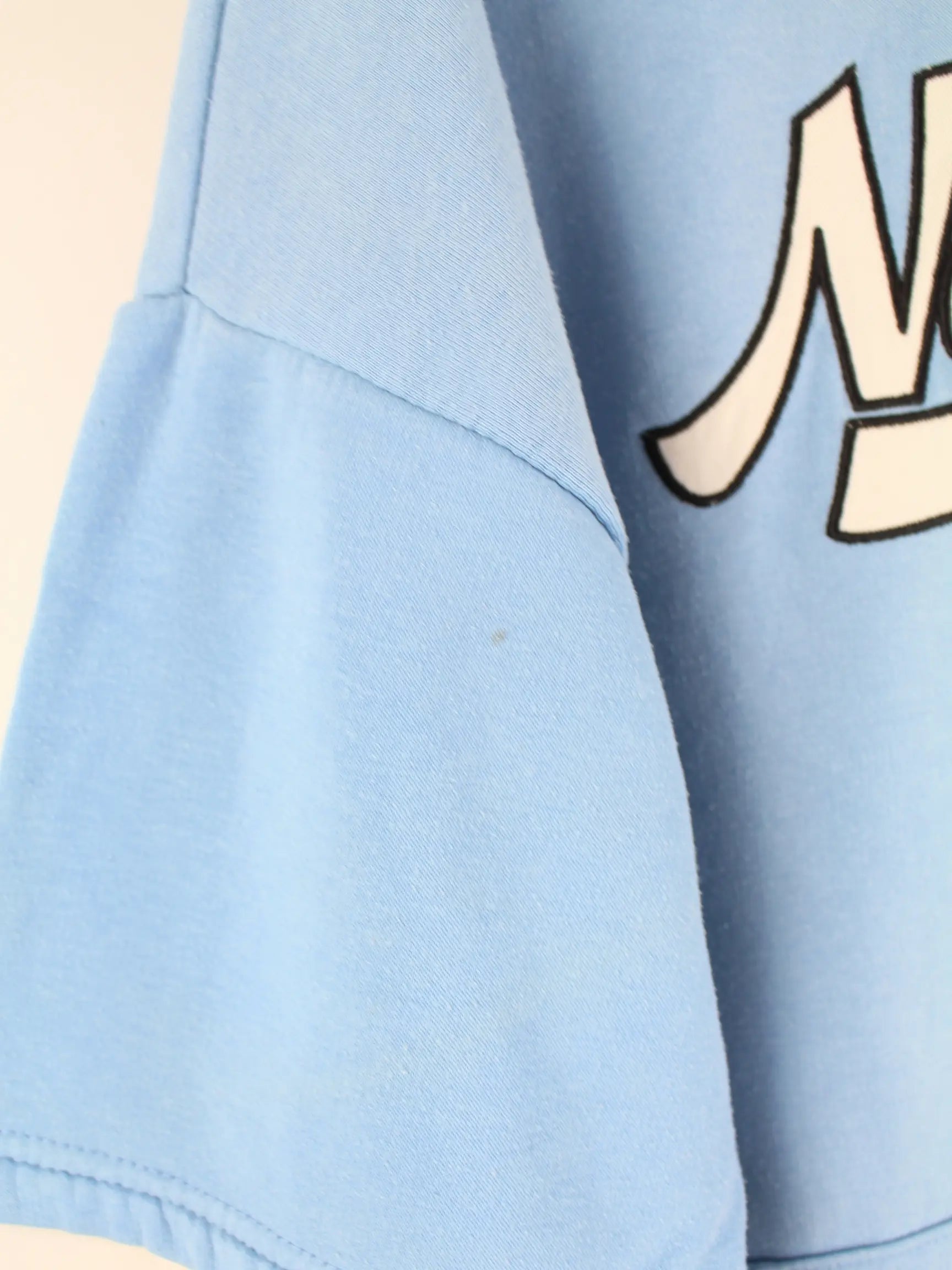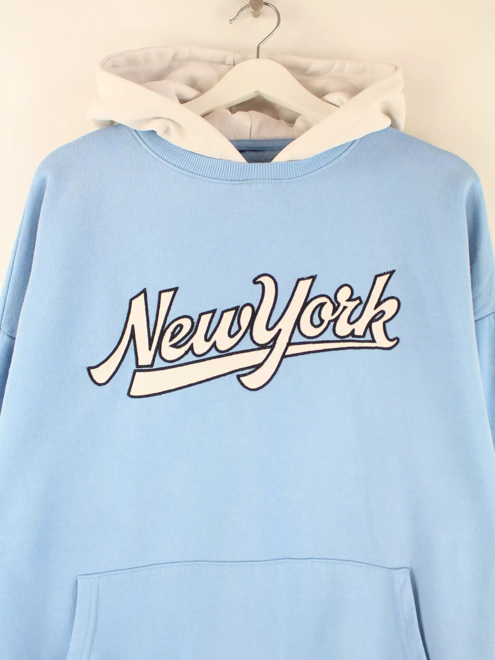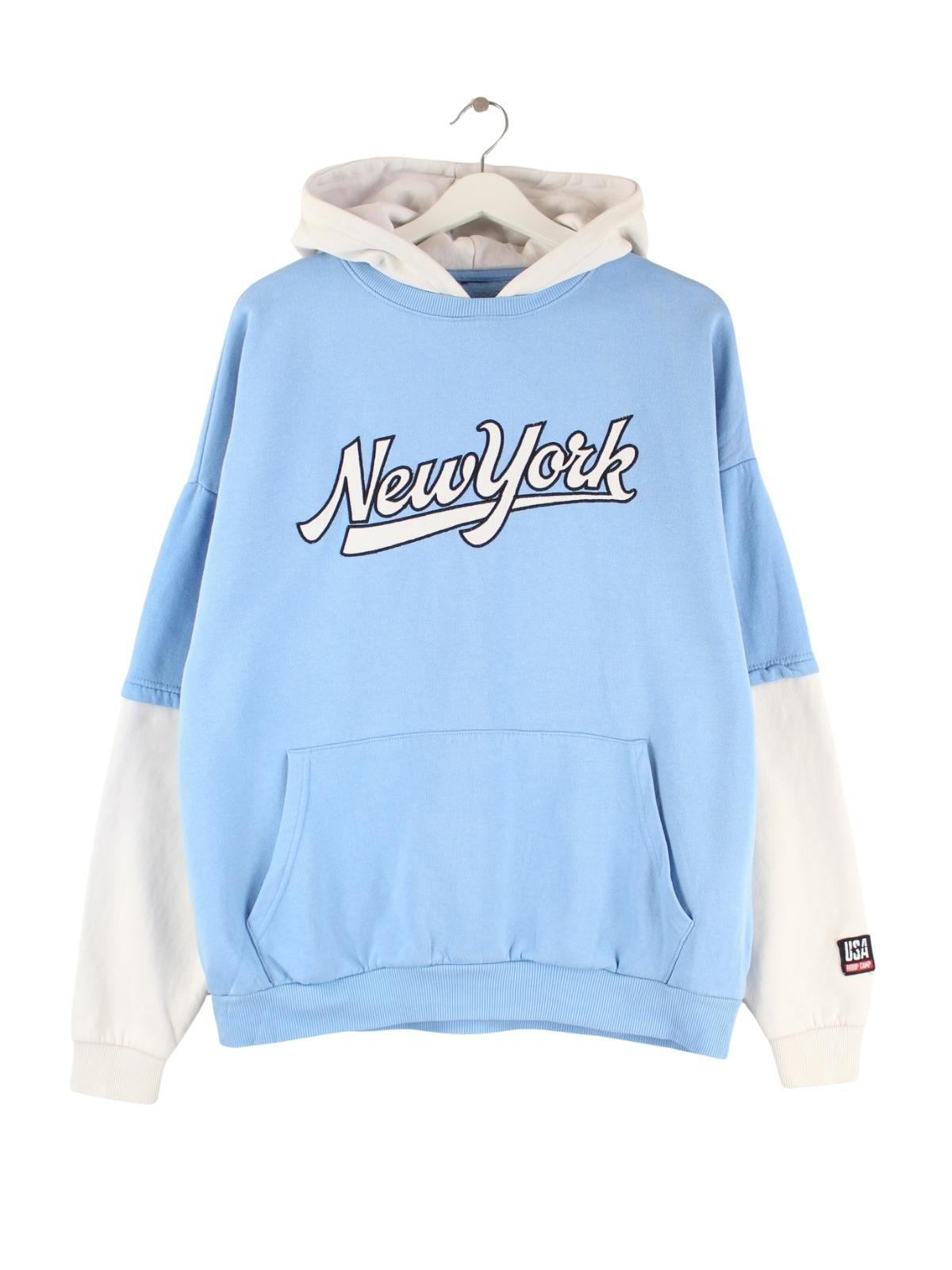 Blauer Vintage Hoodie mit Stick in Größe L. Er ist aus einer Baumwollmischung und in gutem Zustand im Angebot.