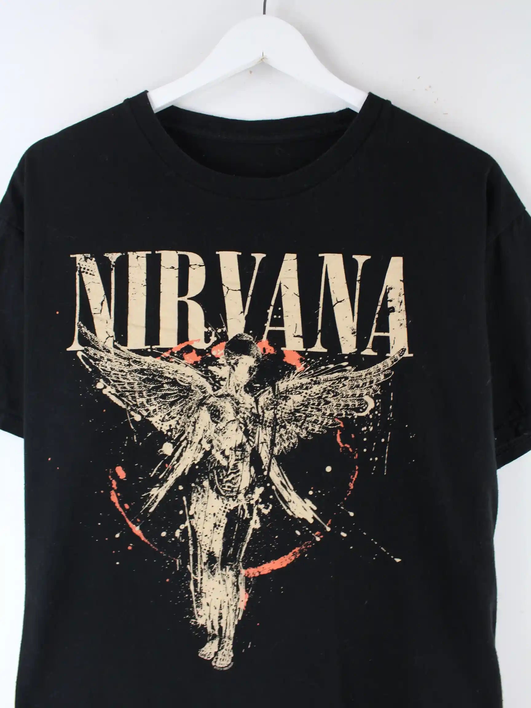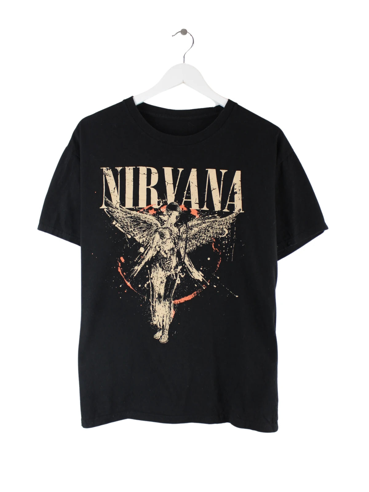 Vintage T-Shirt in Größe M. Es ist aus Baumwolle angefertigt und in Schwarz im Angebot. Mit chiquem Nirvana Print.