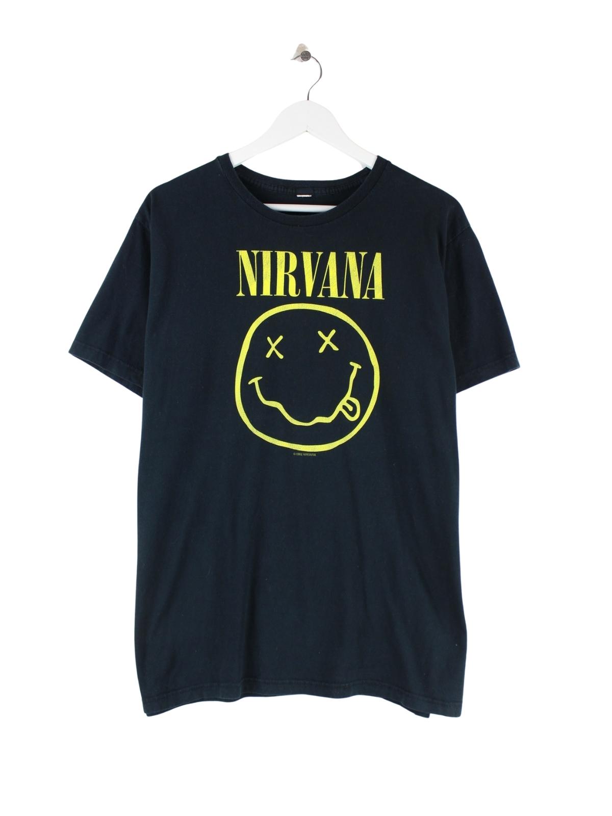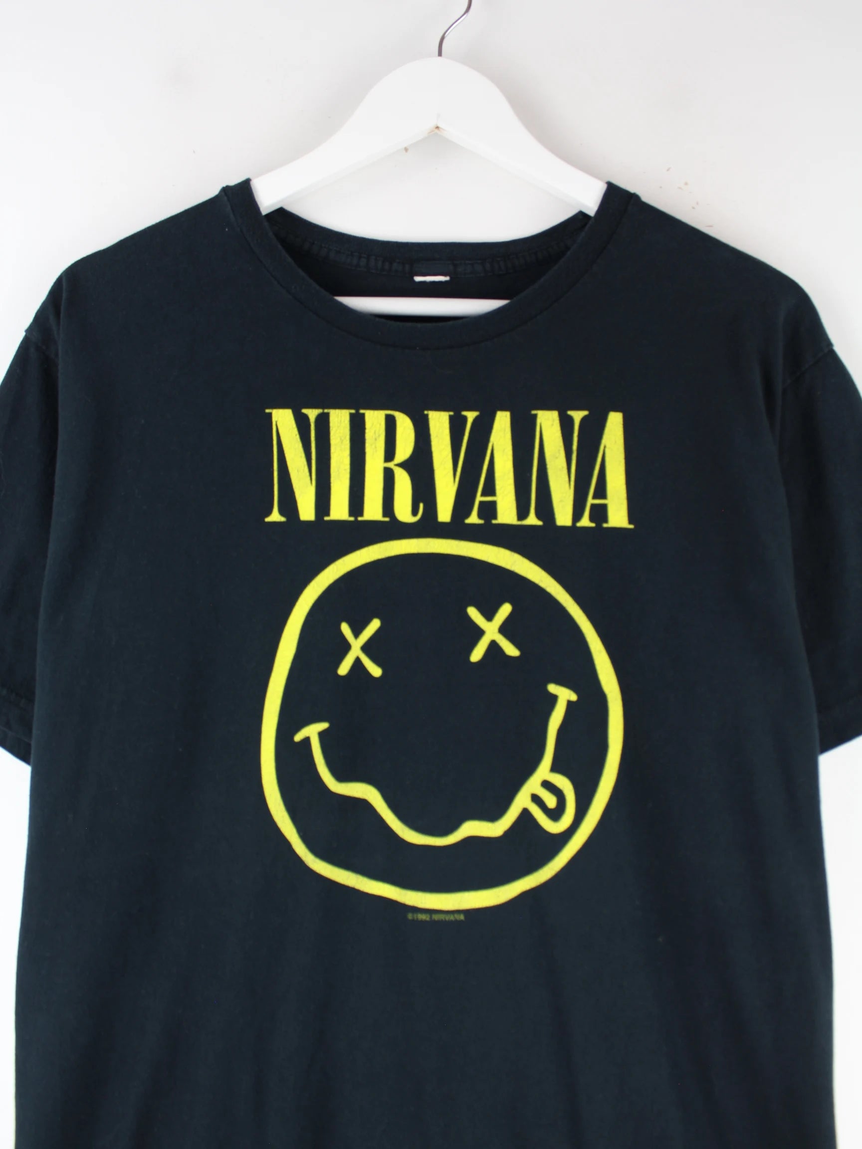 Vintage T-Shirt in Größe M. Es ist aus Baumwolle und in Schwarz vorrätig. Mit schickem Nirvana Print.