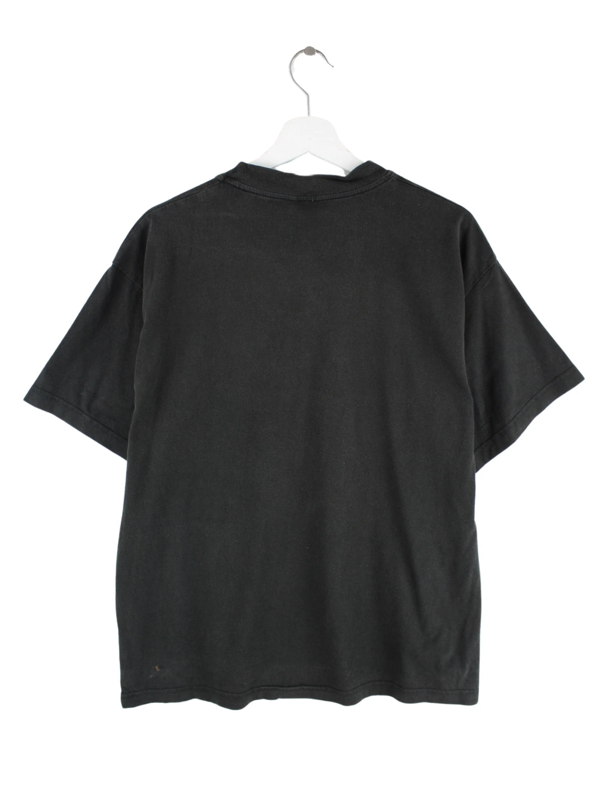 Vintage T-Shirt in Größe L. Es ist aus Baumwolle produziert und in Schwarz bei uns vorrätig. Mit seltenem 2000 Print.