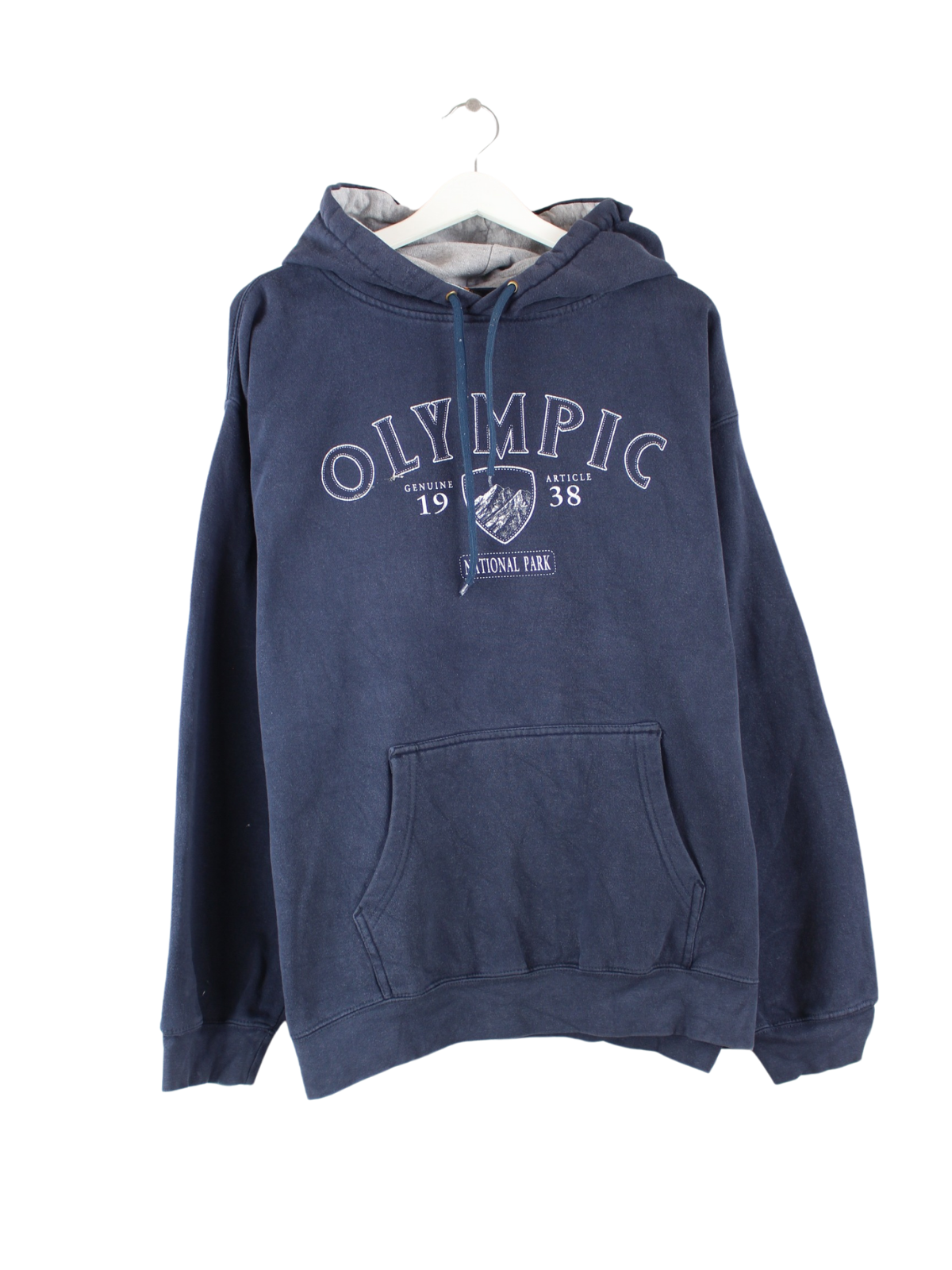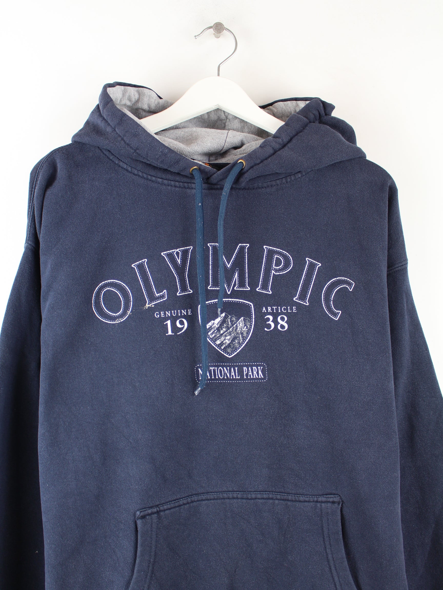 Vintage hoodie in size XXL. It is made of cotton and available from us in blue. With a rare Olympic print.