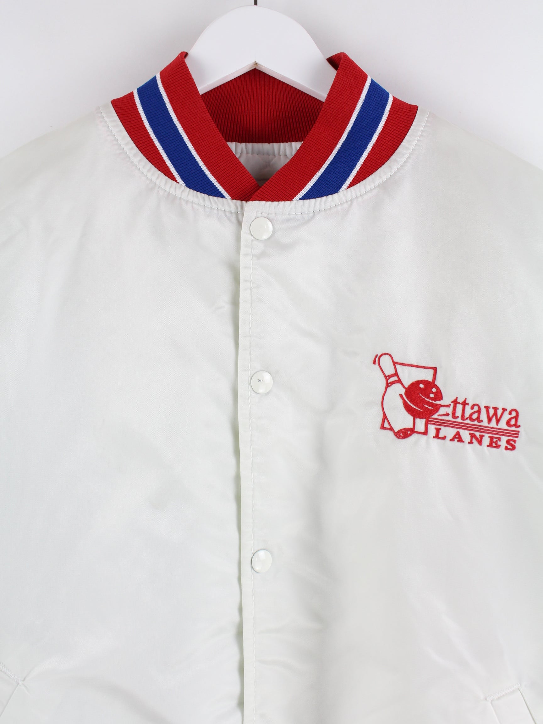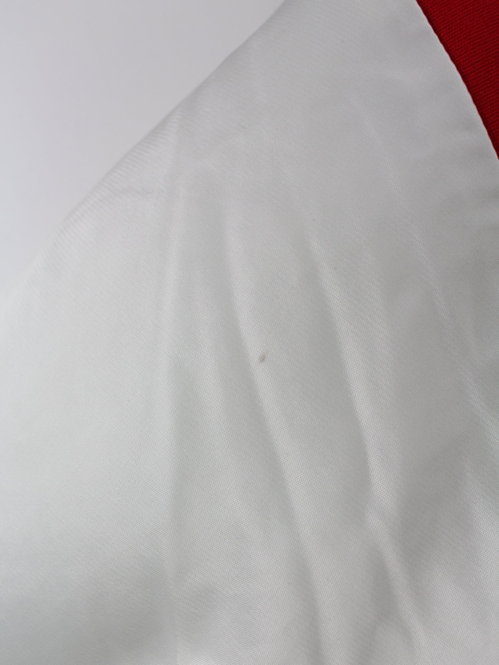 White vintage light jacket in size XL. It is made of synthetic material and is in good condition on stock.