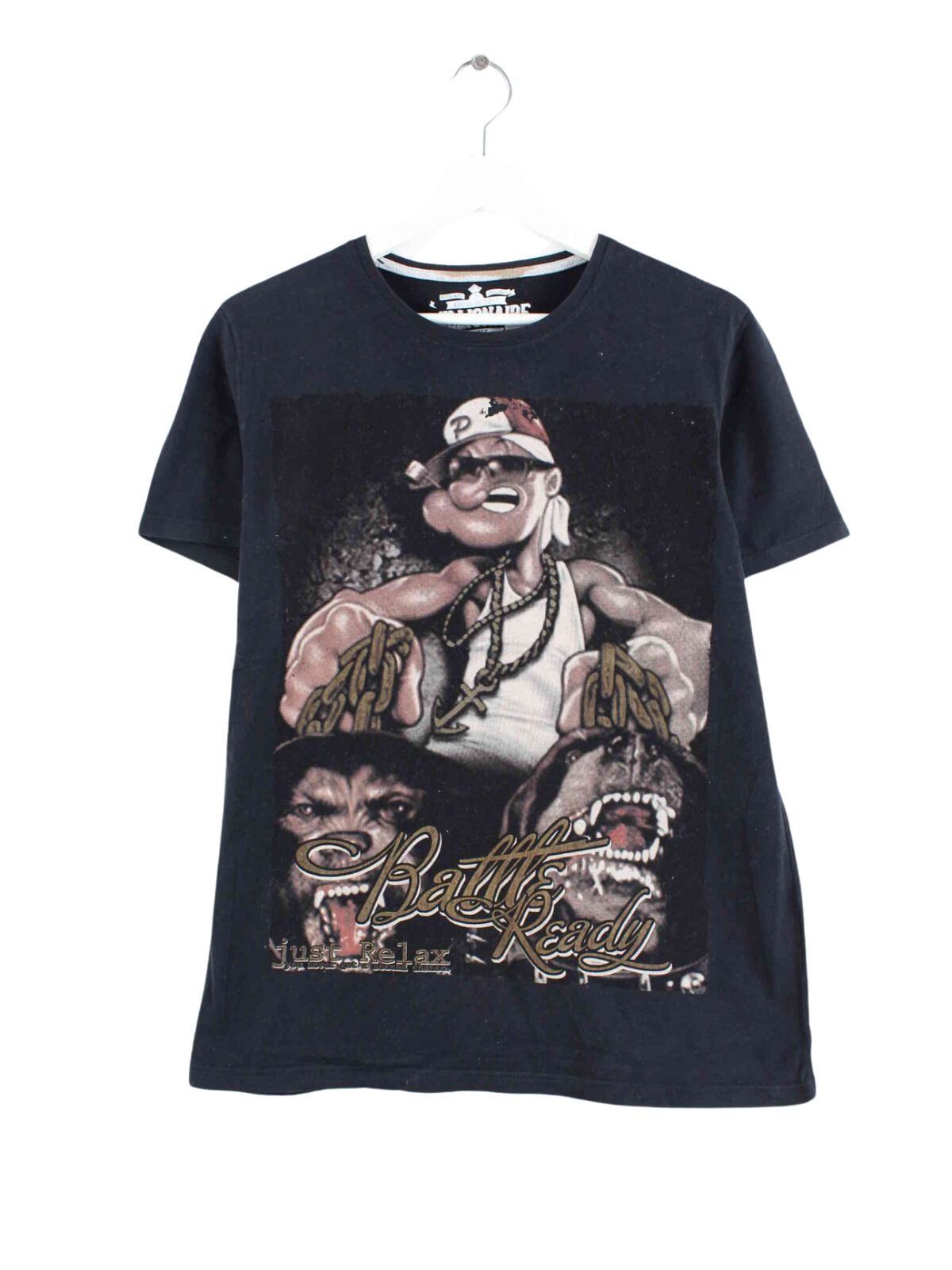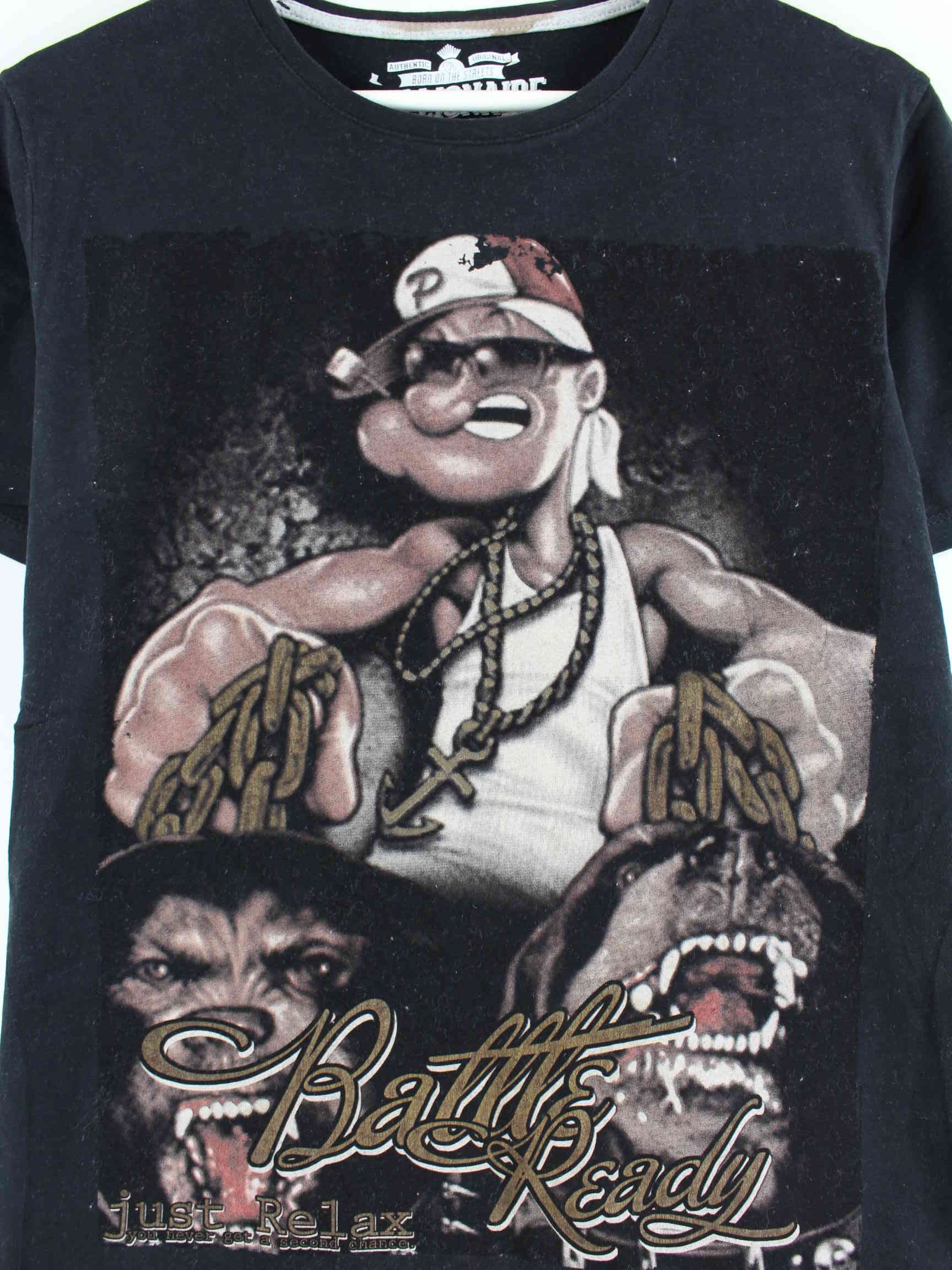 Vintage T-shirt in size L. It is made of cotton and is available from us in black. With a chic Popeye print.