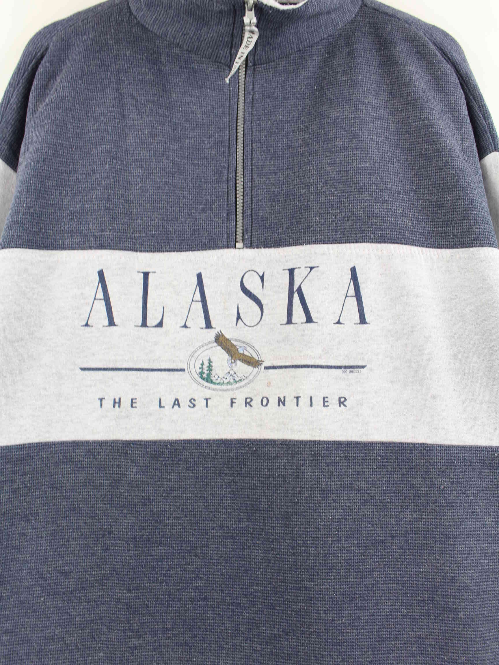 Vintage Print Half Zip Sweater Blue XXL
