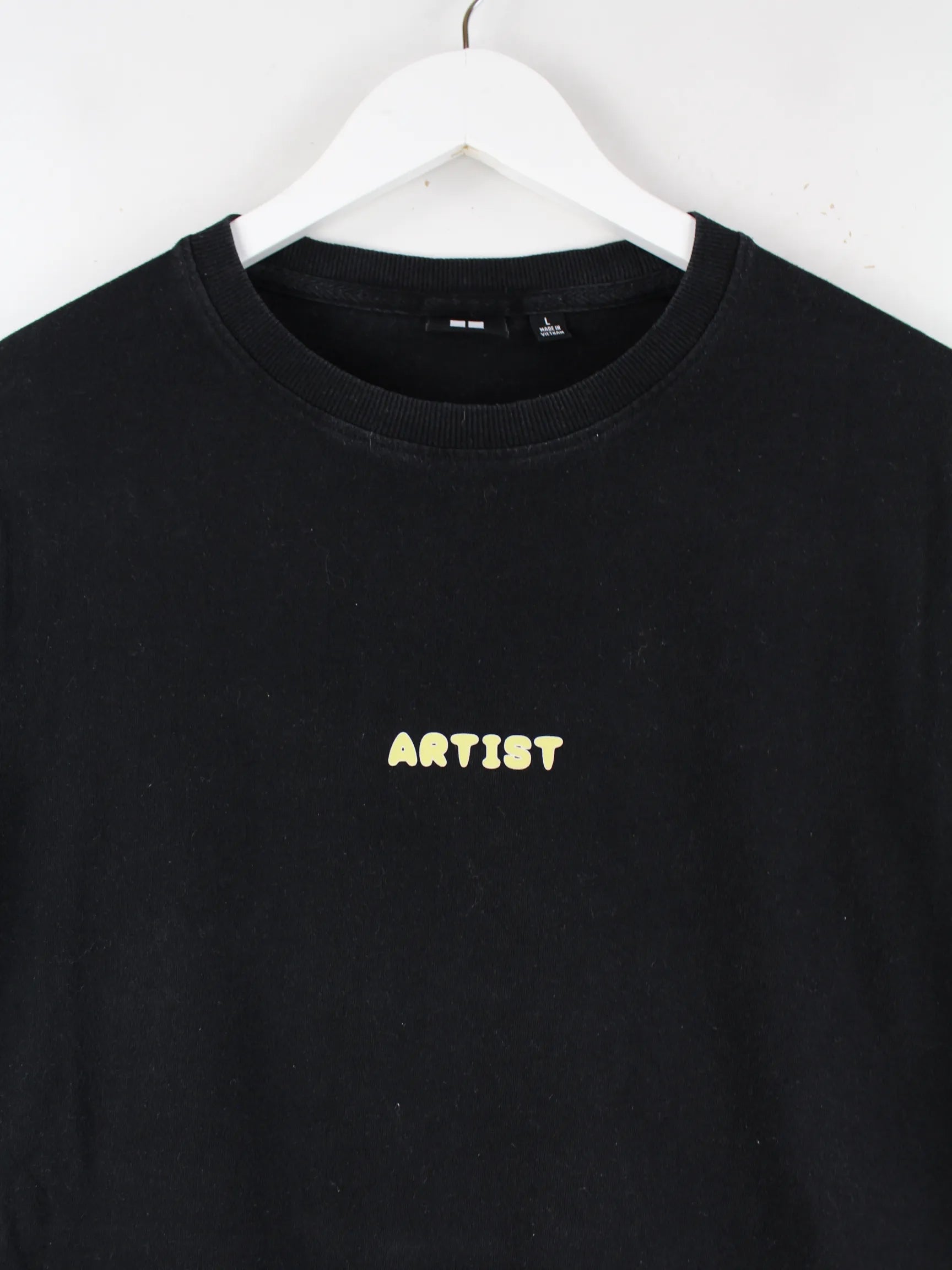 Vintage Sweatshirt in Größe L. Es ist aus Baumwolle hergestellt und in Schwarz im Bestand. Mit seltenem Print.