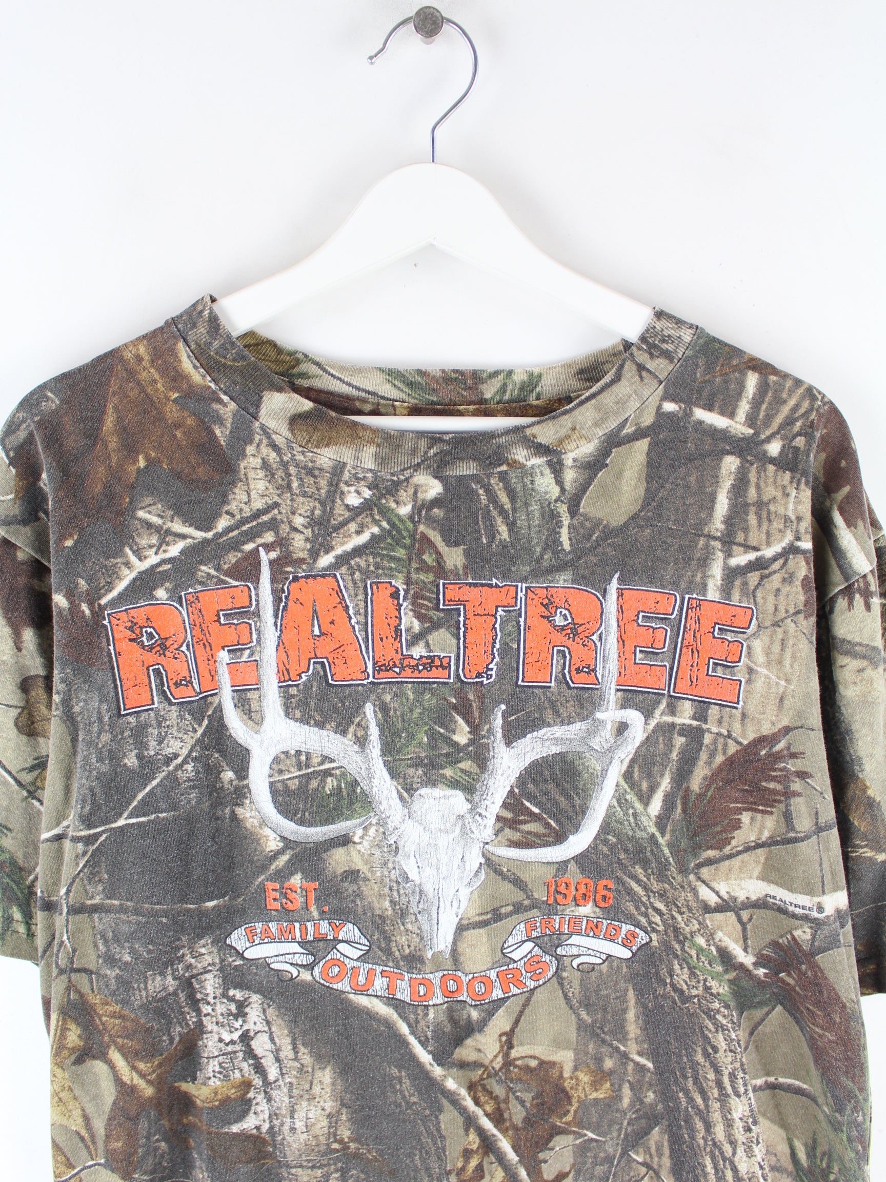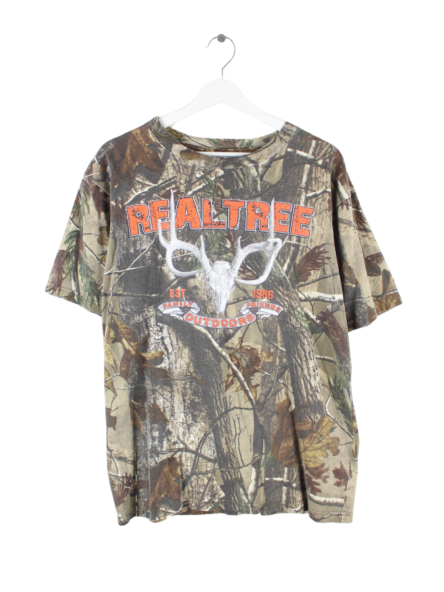 Vintage T-shirt in size XL. It is made of cotton and is available from us in brown. With a chic Realtree print.