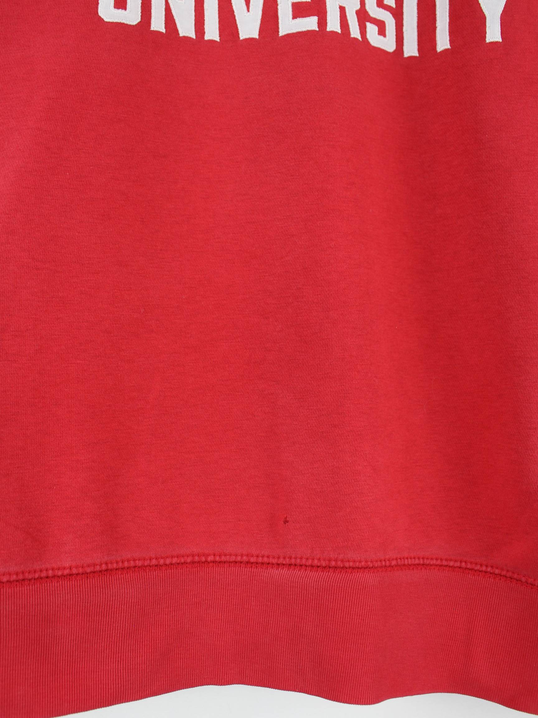 Vintage Sweater mit Stick in Größe XL. Er ist aus einer Baumwollmischung produziert und in Rot lieferbar.