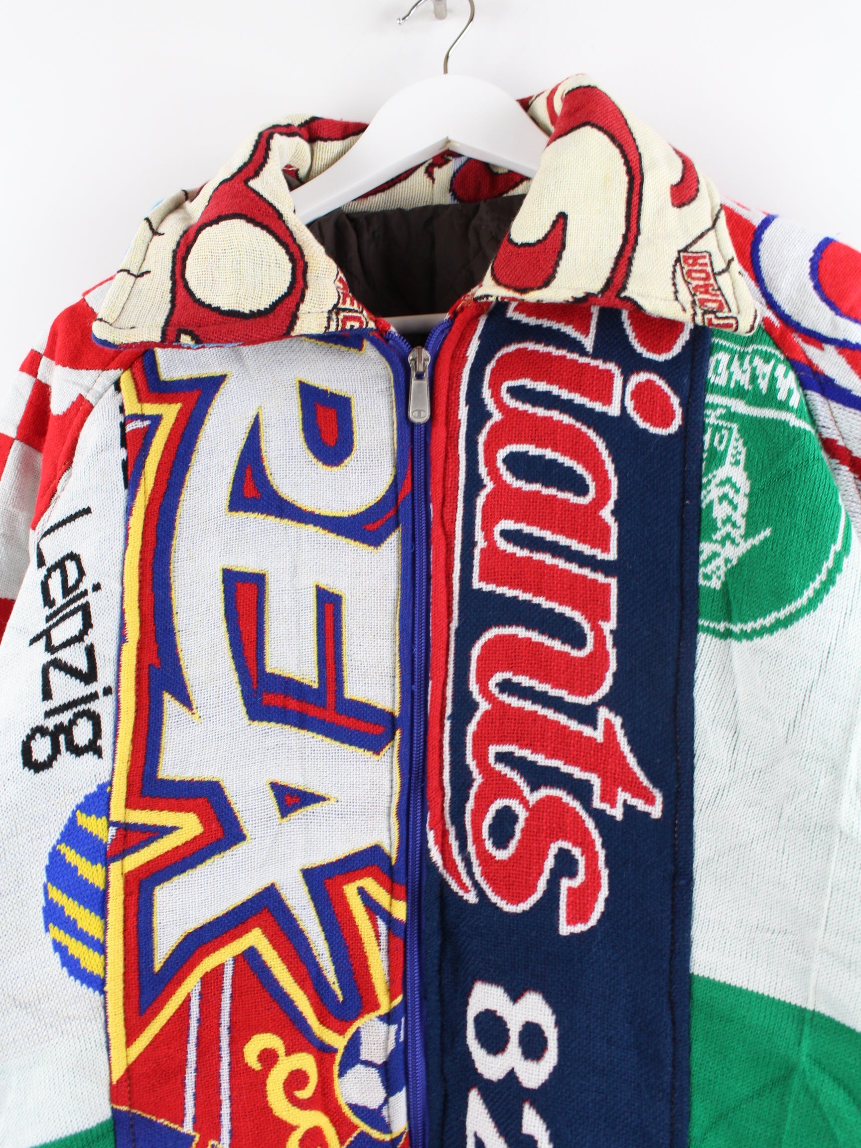Vintage jacket in size XL. It is made of synthetic material and is available in bright colors.