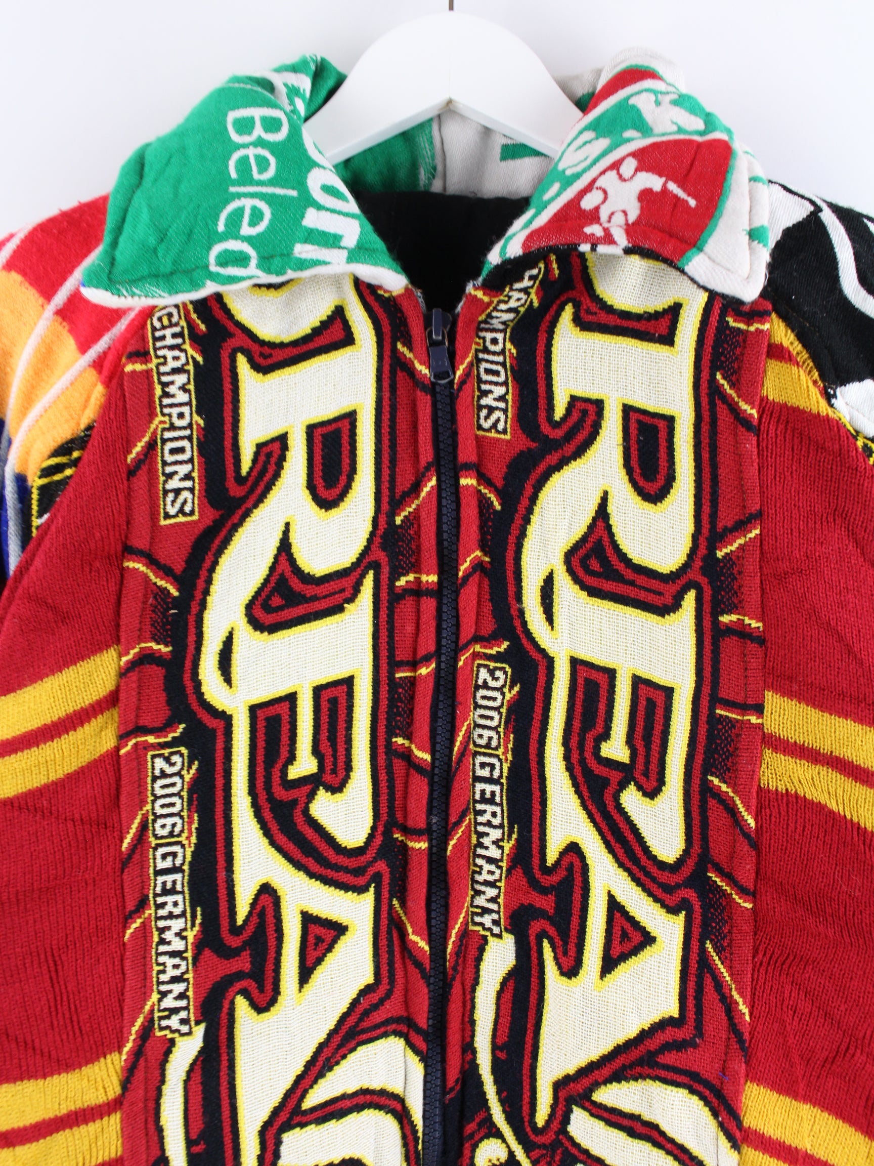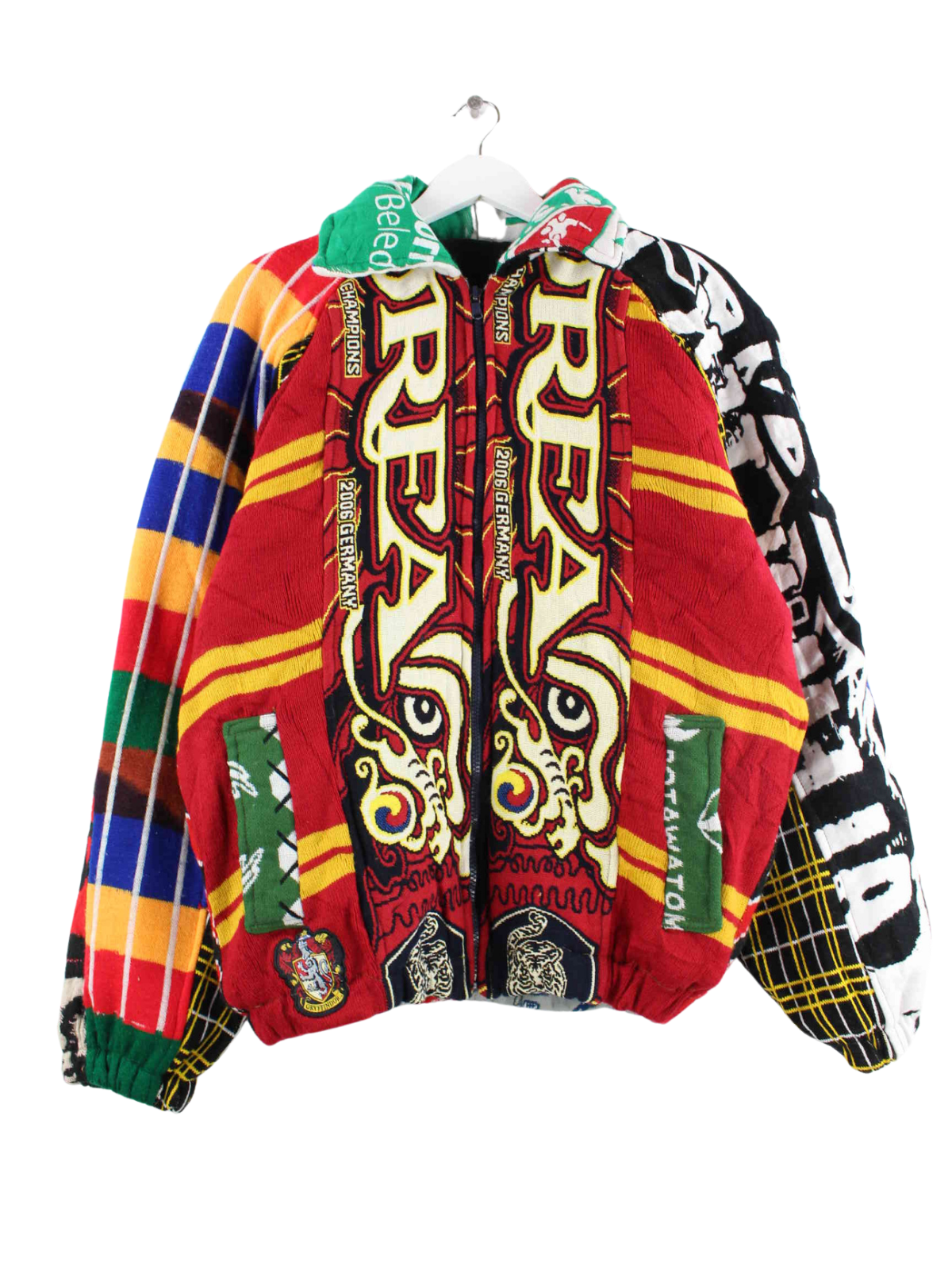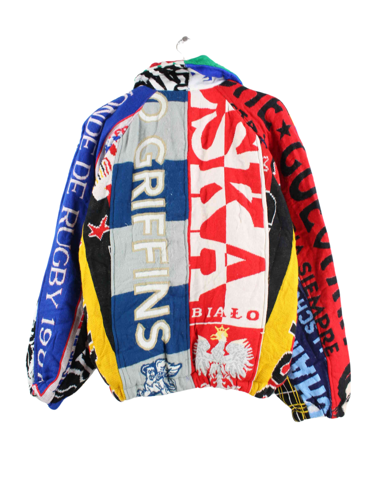 Multicolored vintage jacket in size L. It is made of synthetic material and is available from us in very good condition.