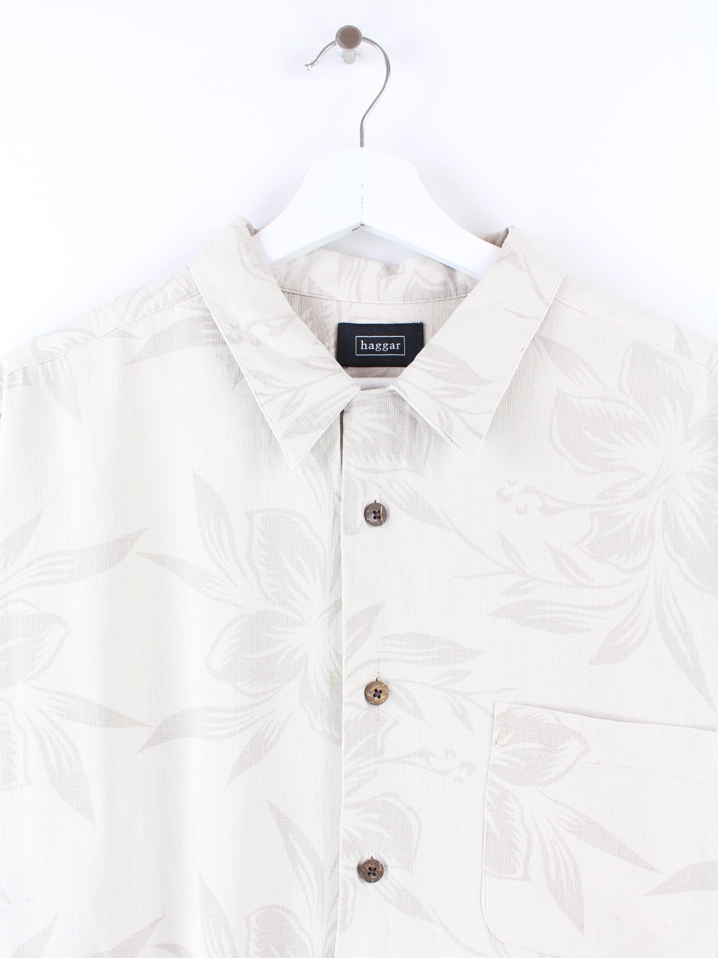 Vintage Silk Hawaiian Casual Shirt Beige XL