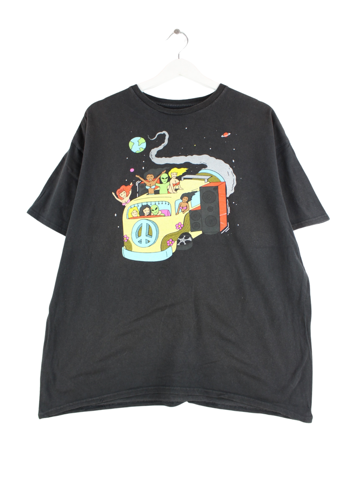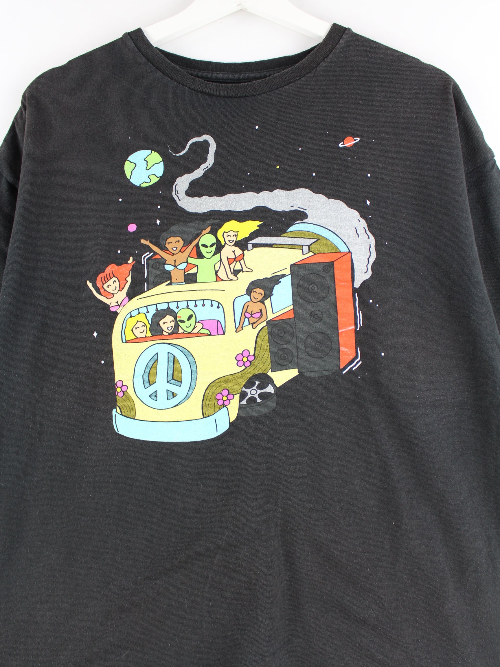 Vintage T-shirt in size M. It is made of cotton and available in black. With a chic space print.